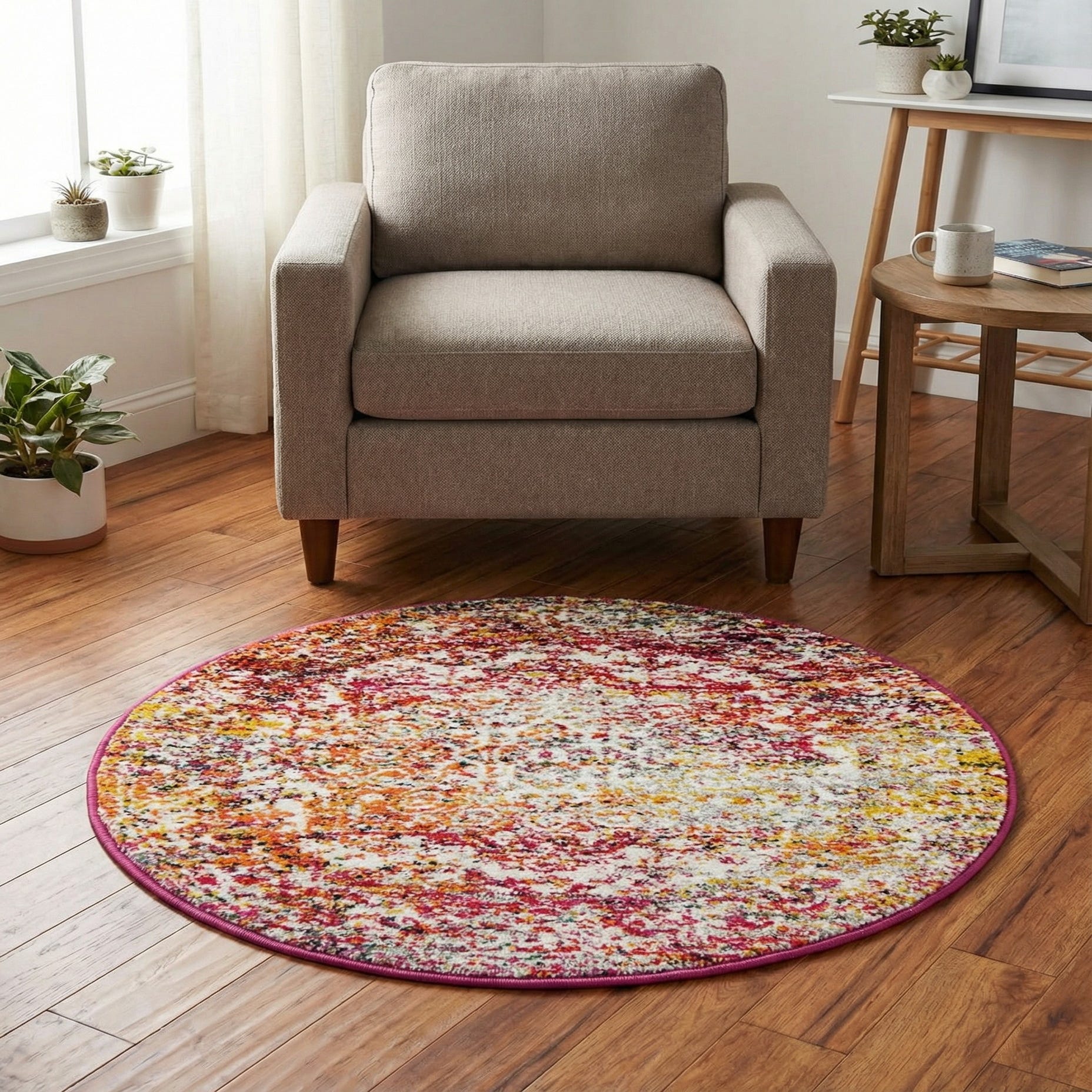 Primary color is Multi. Colors in this rug include: Multi, Black, Gray, Ivory, Orange, Red, Yellow.