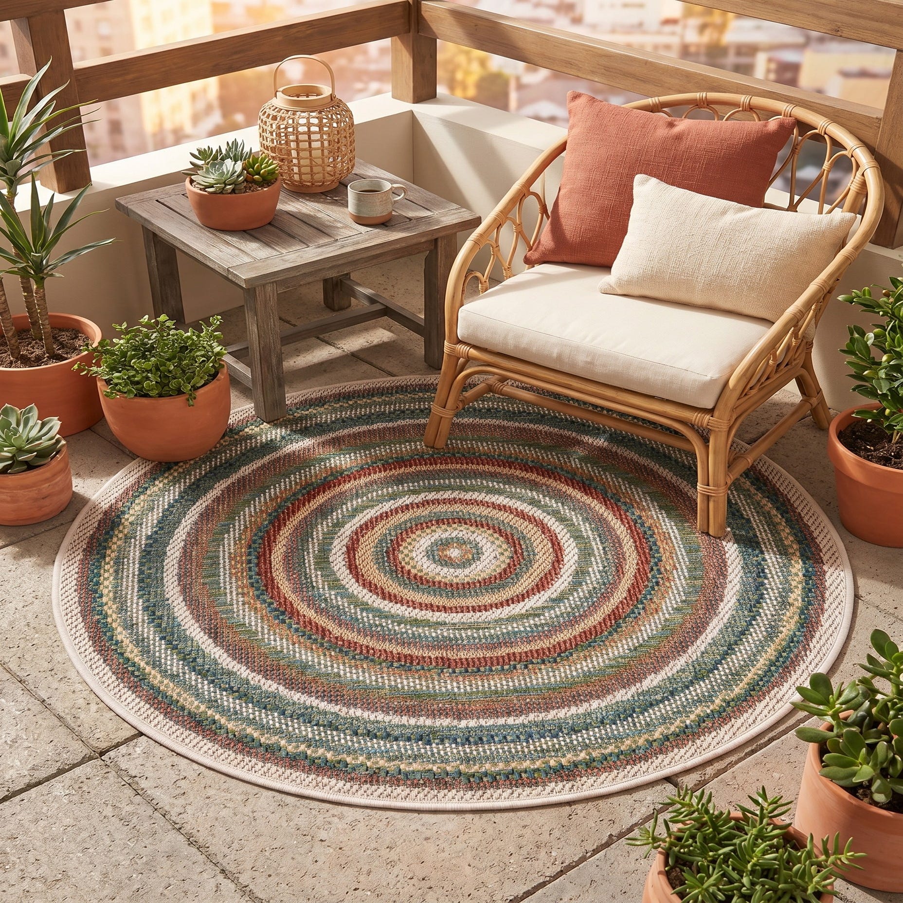 3' 3 x 3' 3 Easy-Clean Baja Indoor / Outdoor Round Rug