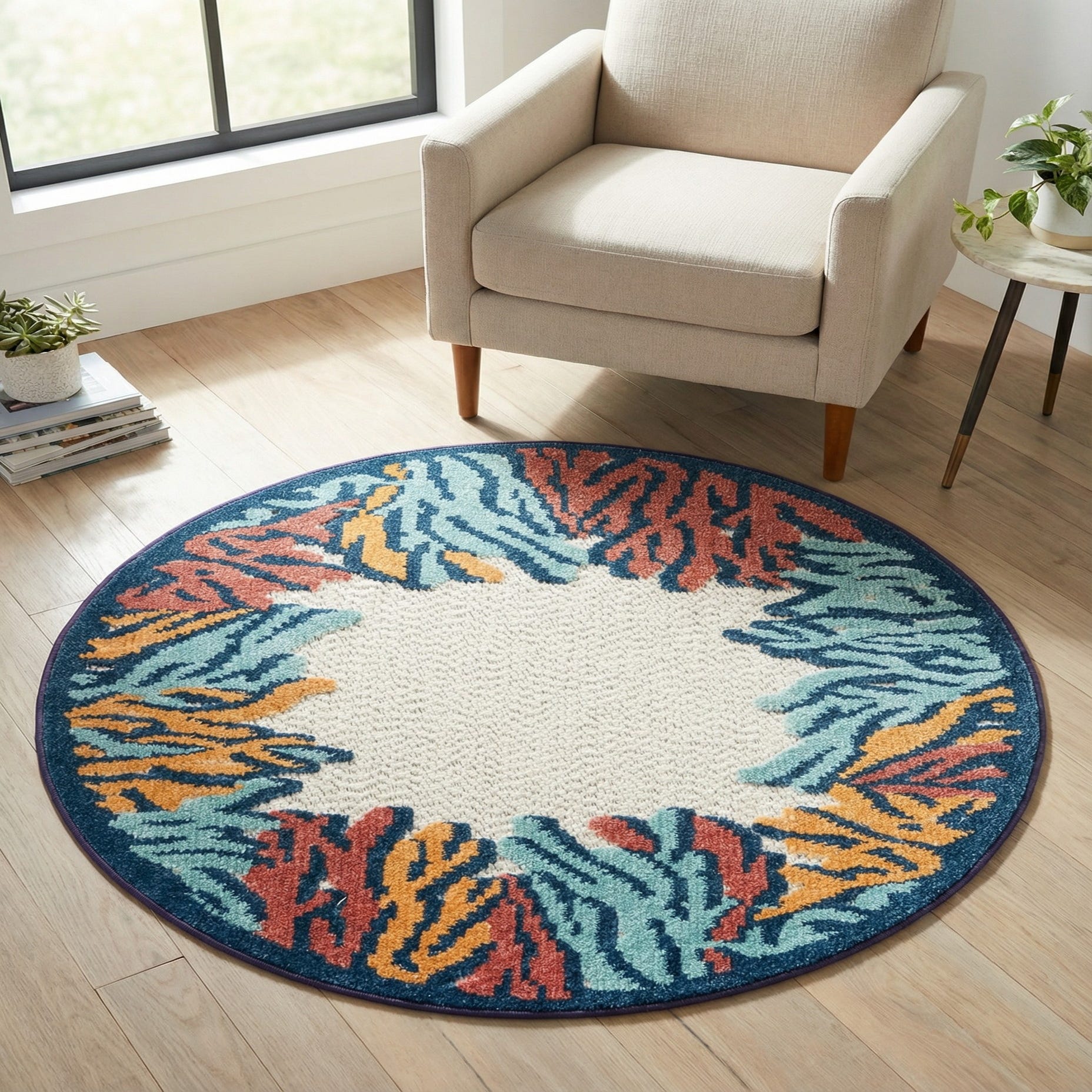 3' 3 x 3' 3 Washable Belize Indoor / Outdoor Round Rug
