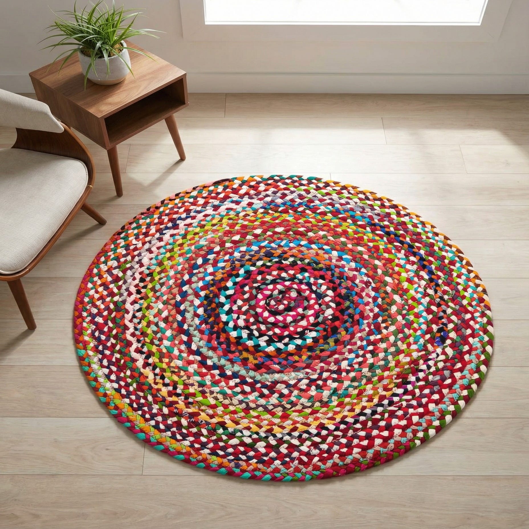 3' 3 x 3' 3 Hand Braided Chindi Round Rug