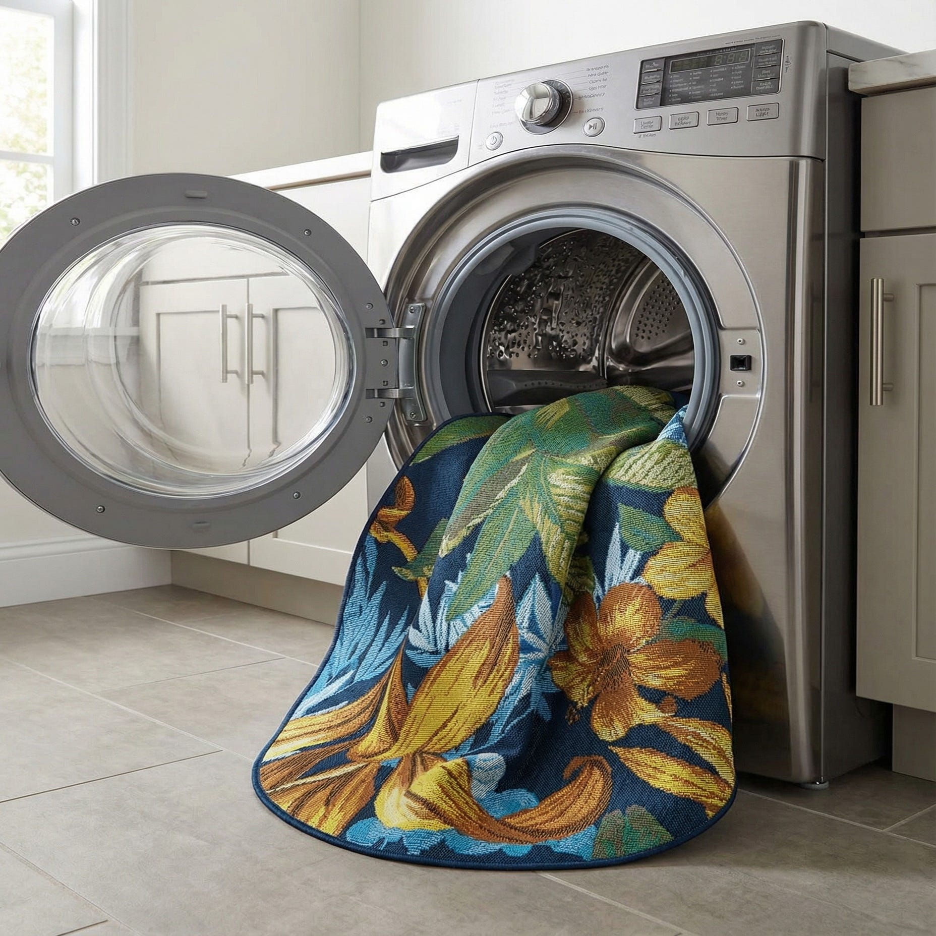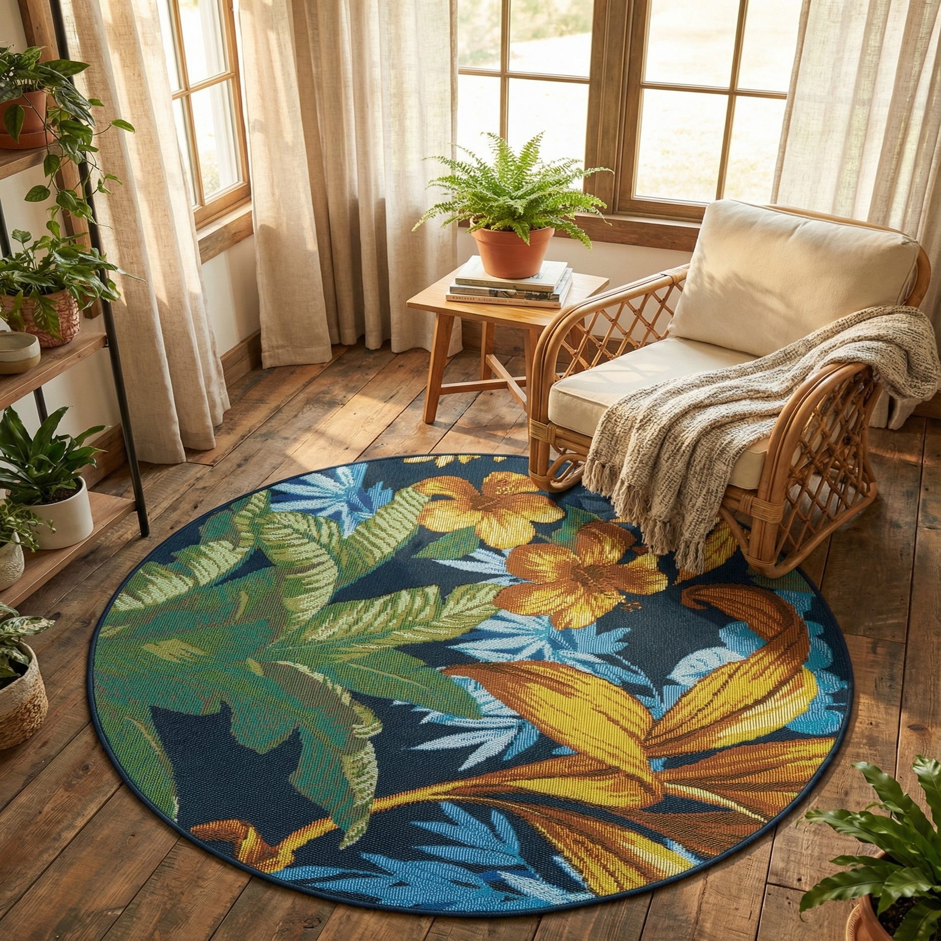 3' x 3' Washable Botanical Indoor / Outdoor Round Rug