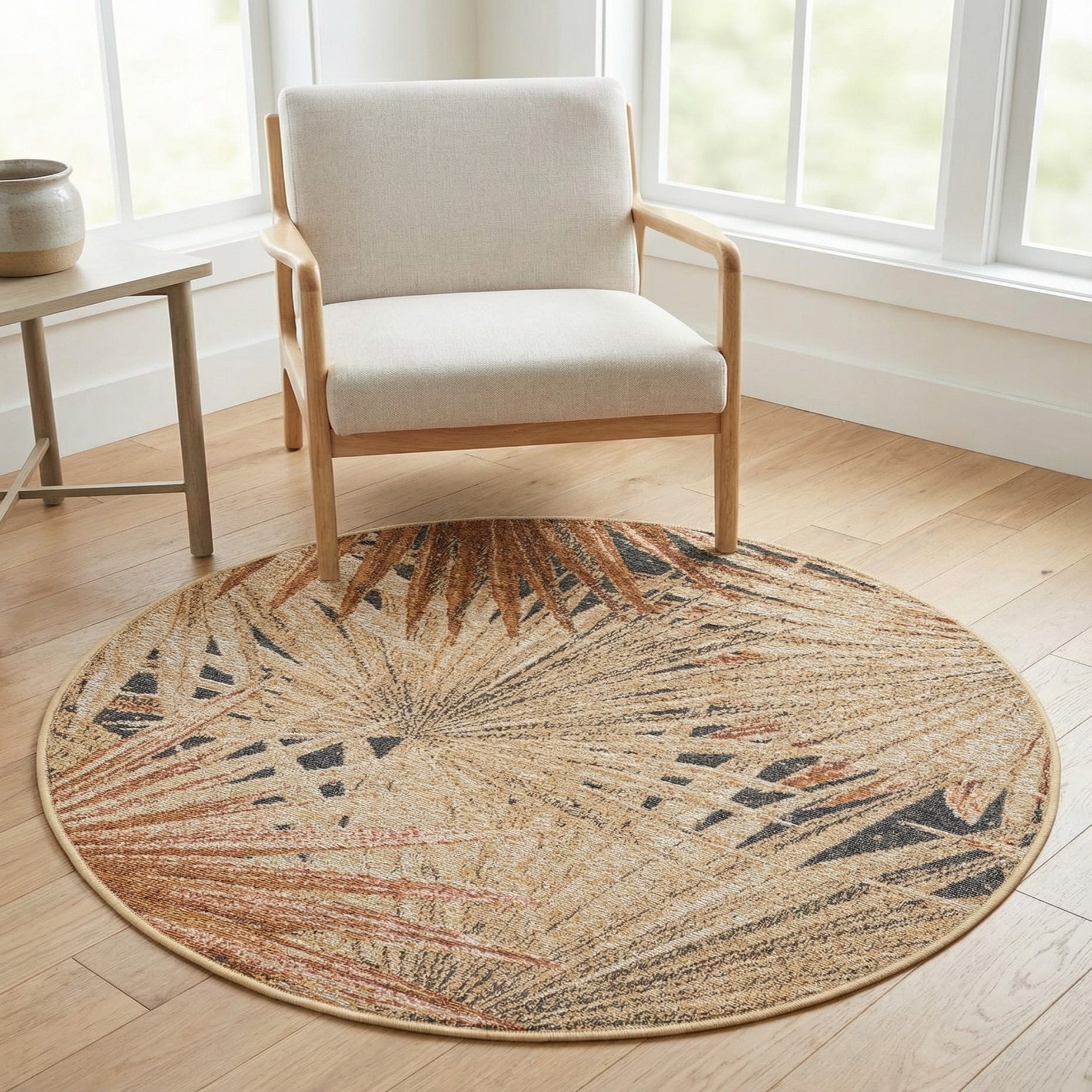 Primary image 3' x 3'  Washable Botanical Indoor / Outdoor Round Rug