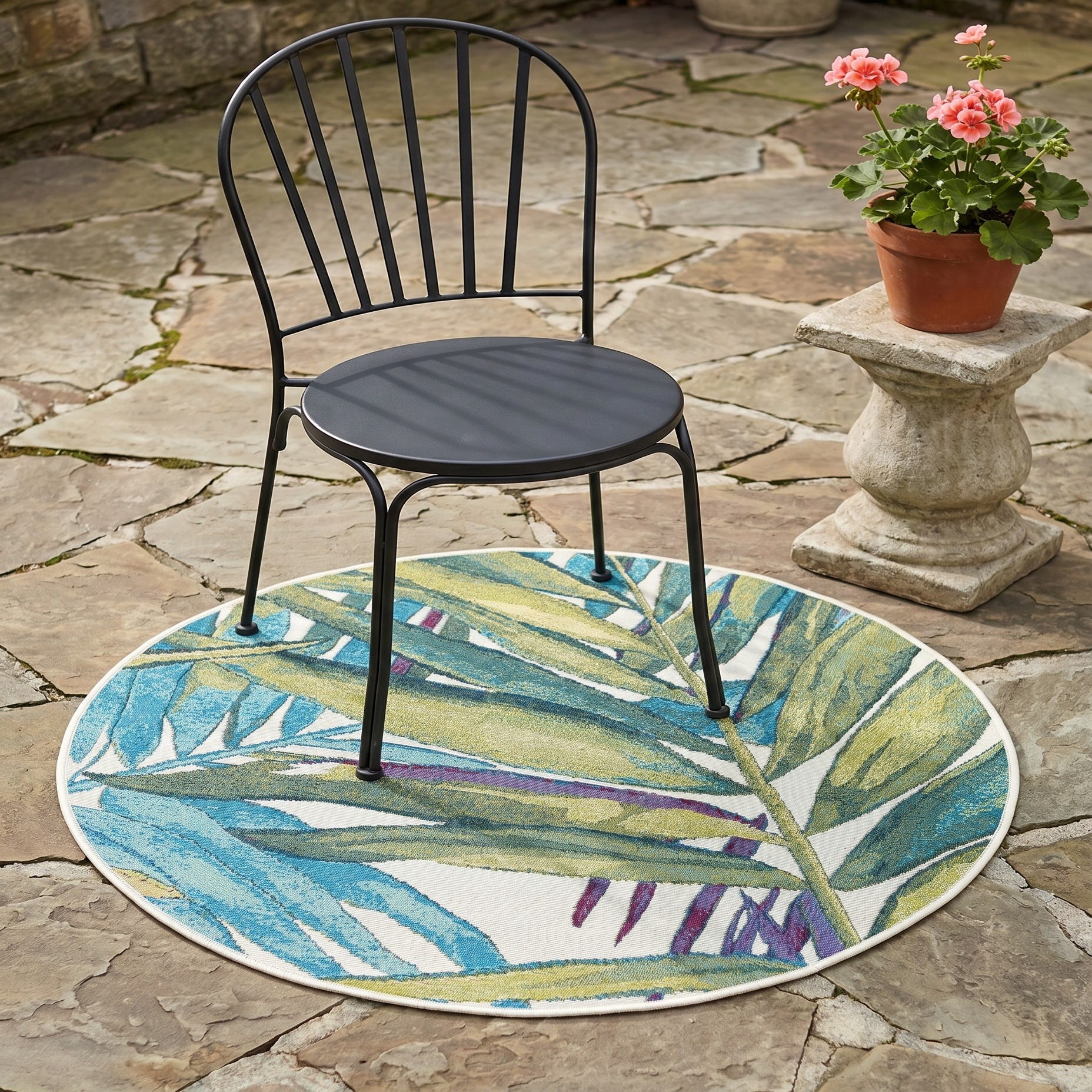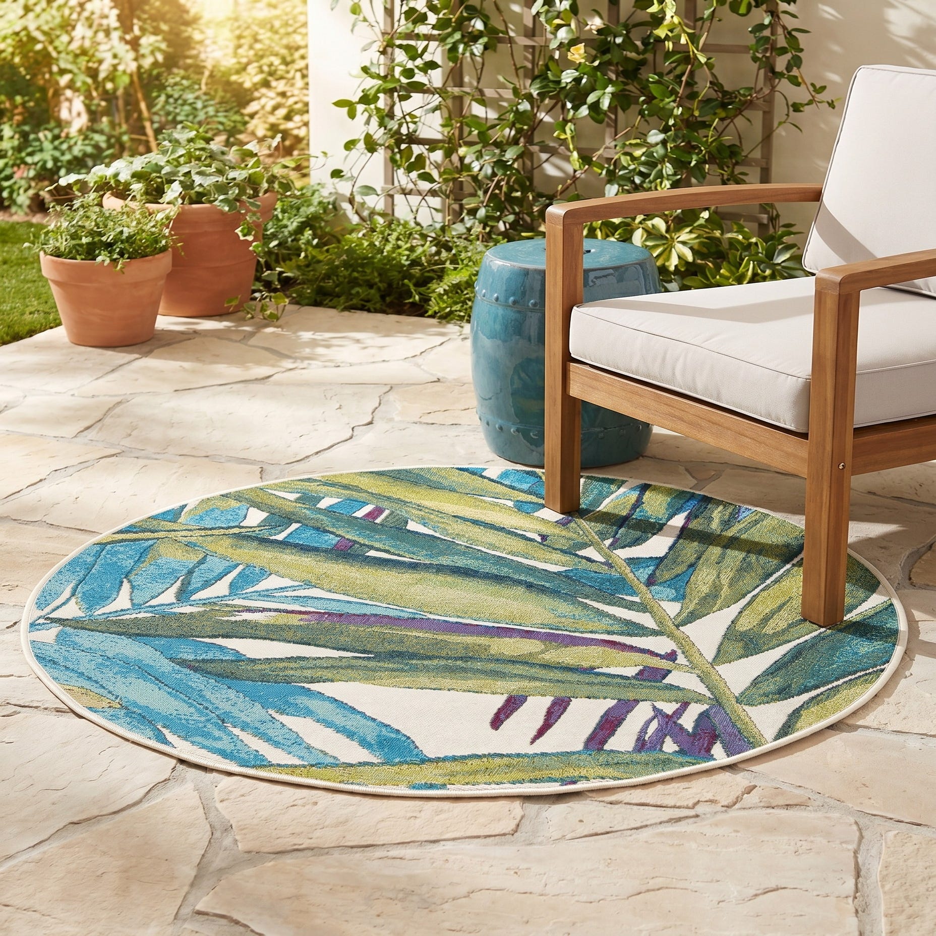 3' x 3' Easy-Clean Botanical Indoor / Outdoor Round Rug