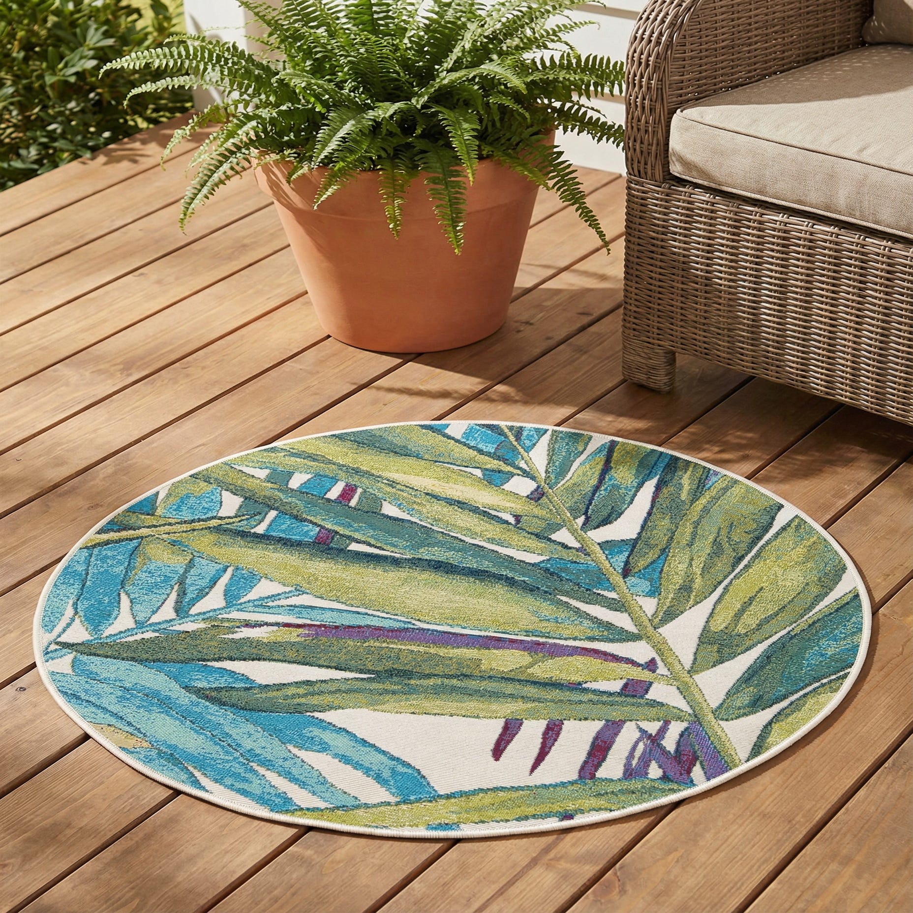 3' x 3' Washable Botanical Indoor / Outdoor Round Rug