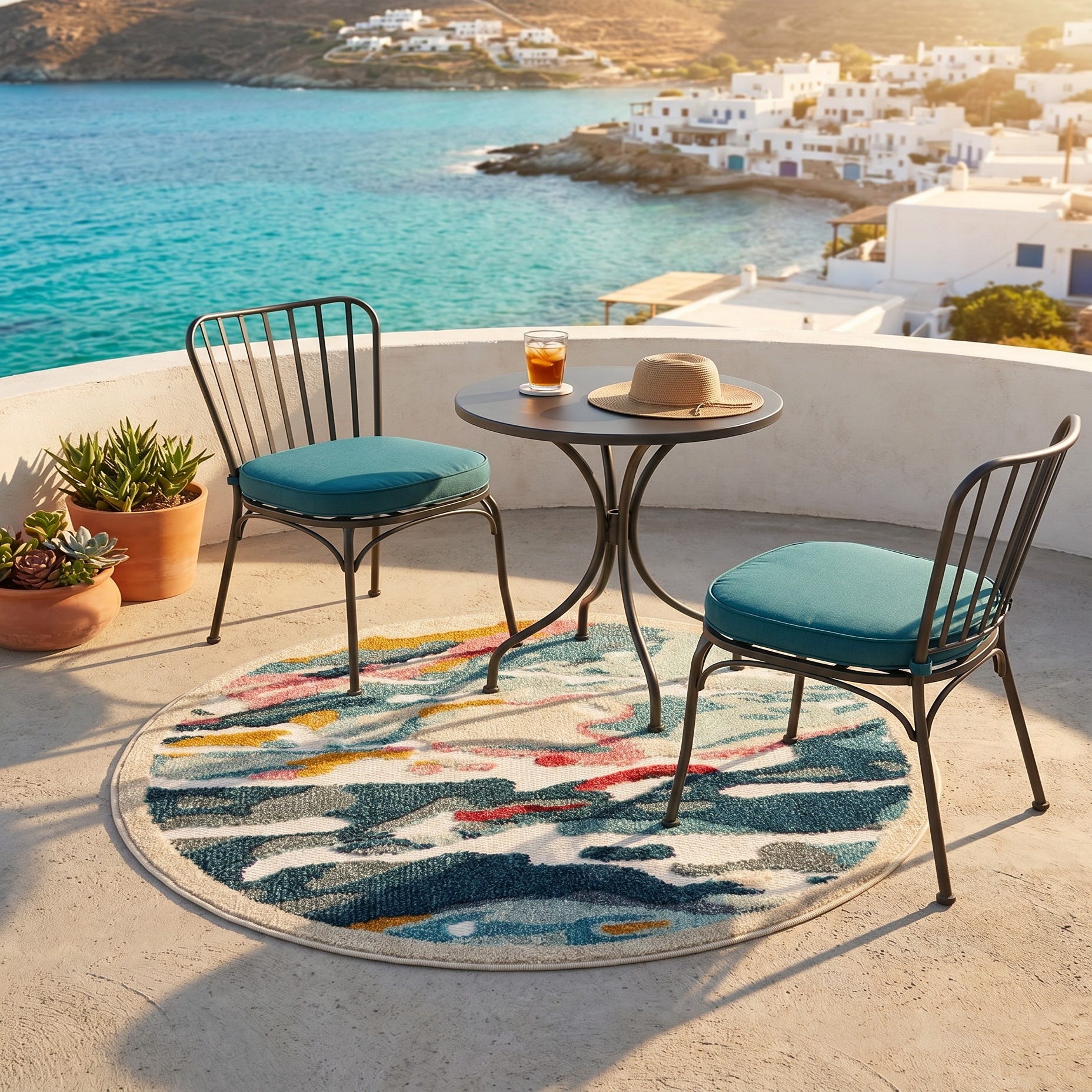 3' x 3' Easy-Clean Casablanca Indoor / Outdoor Round Rug
