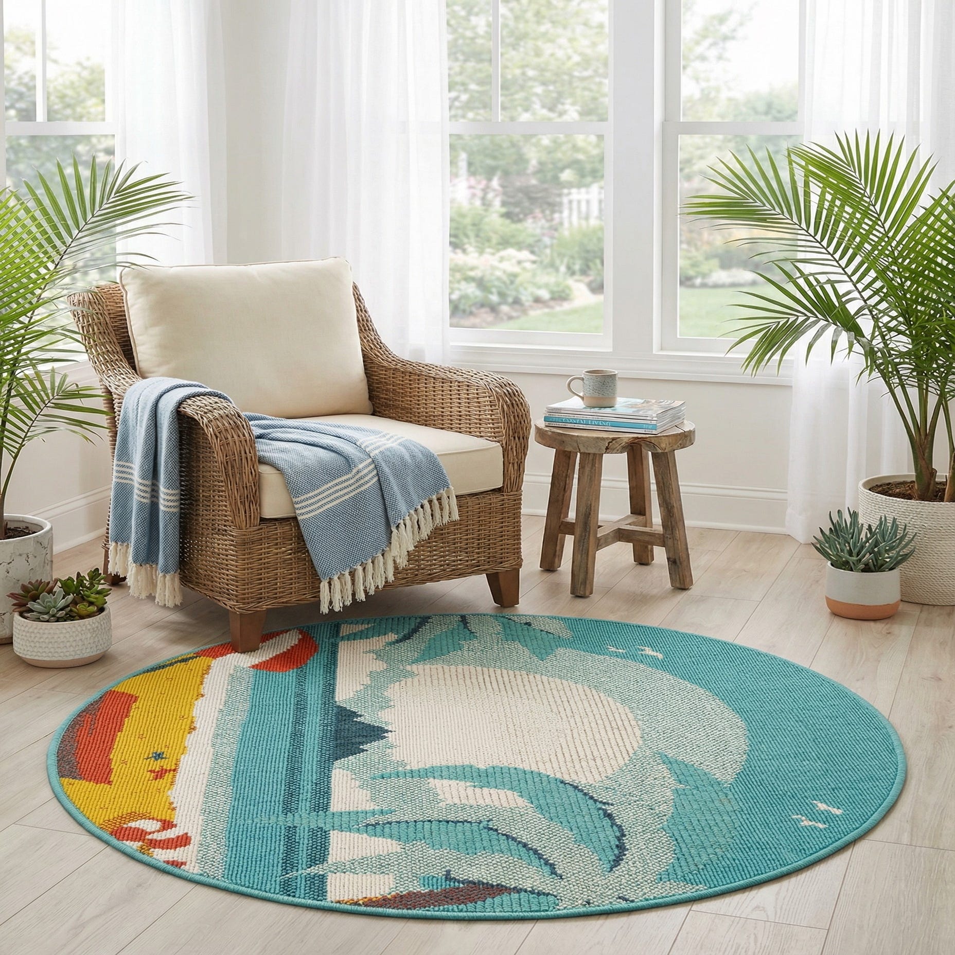 3' x 3' Washable Coastal Indoor / Outdoor Round Rug