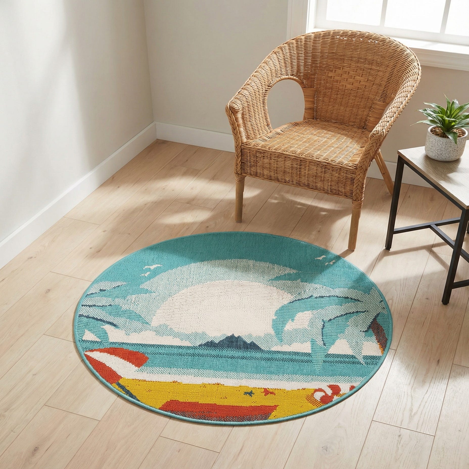 Primary image 3' x 3'  Washable Coastal Indoor / Outdoor Round Rug
