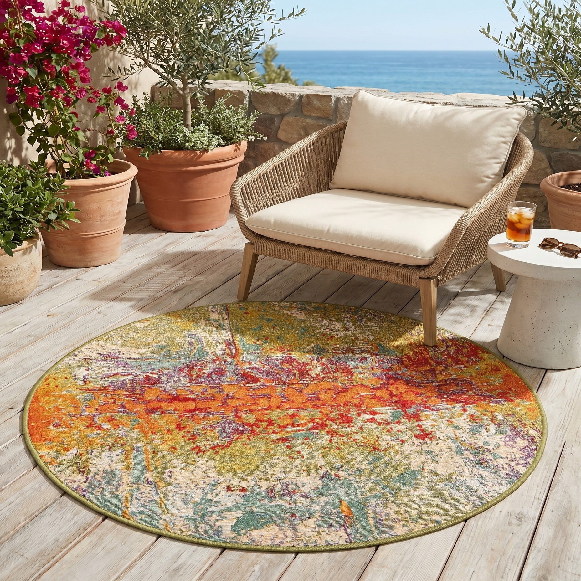 3' 3 x 3' 3 Easy-Clean Modern Indoor / Outdoor Round Rug