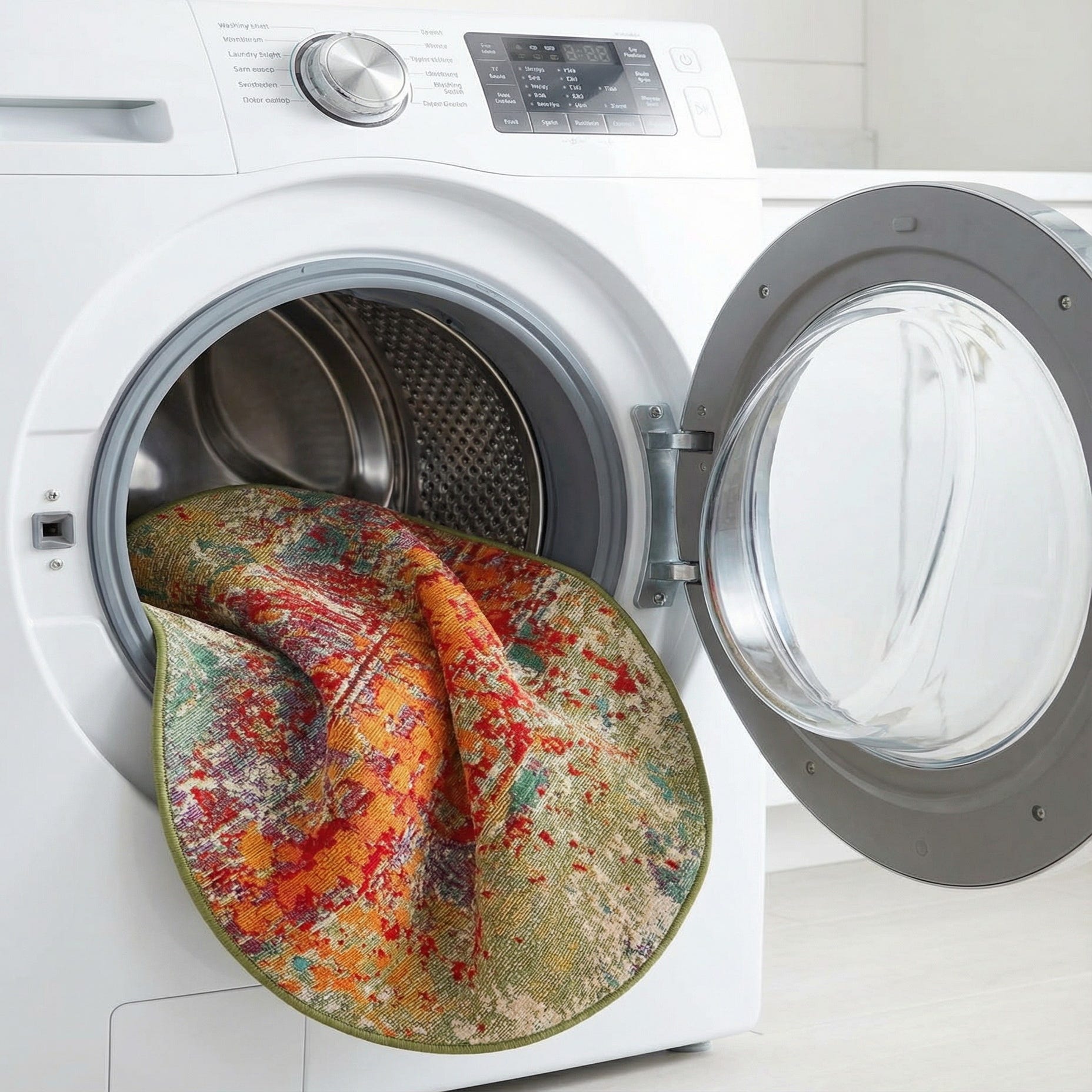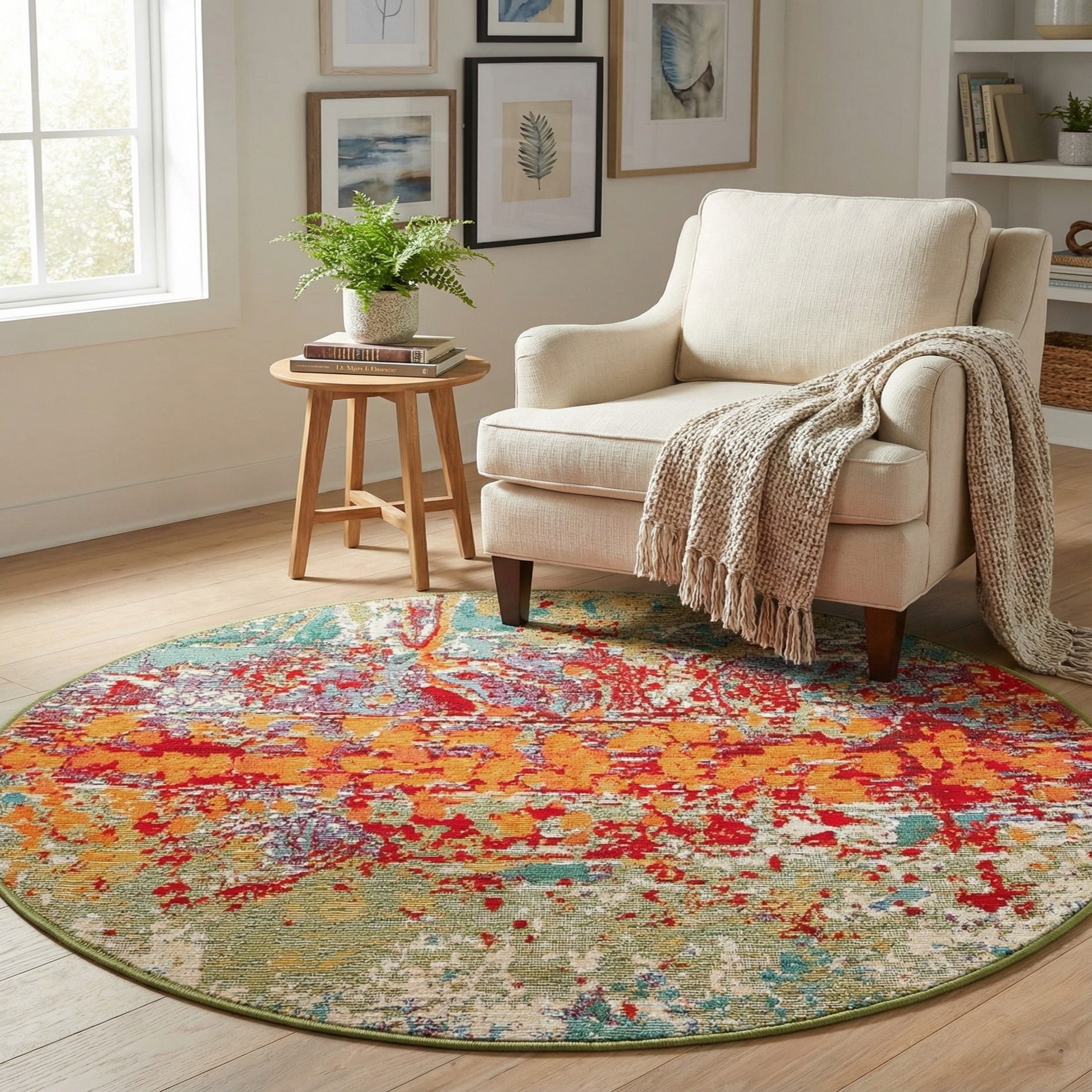 2' 7 x 2' 7 Washable Modern Indoor / Outdoor Round Rug