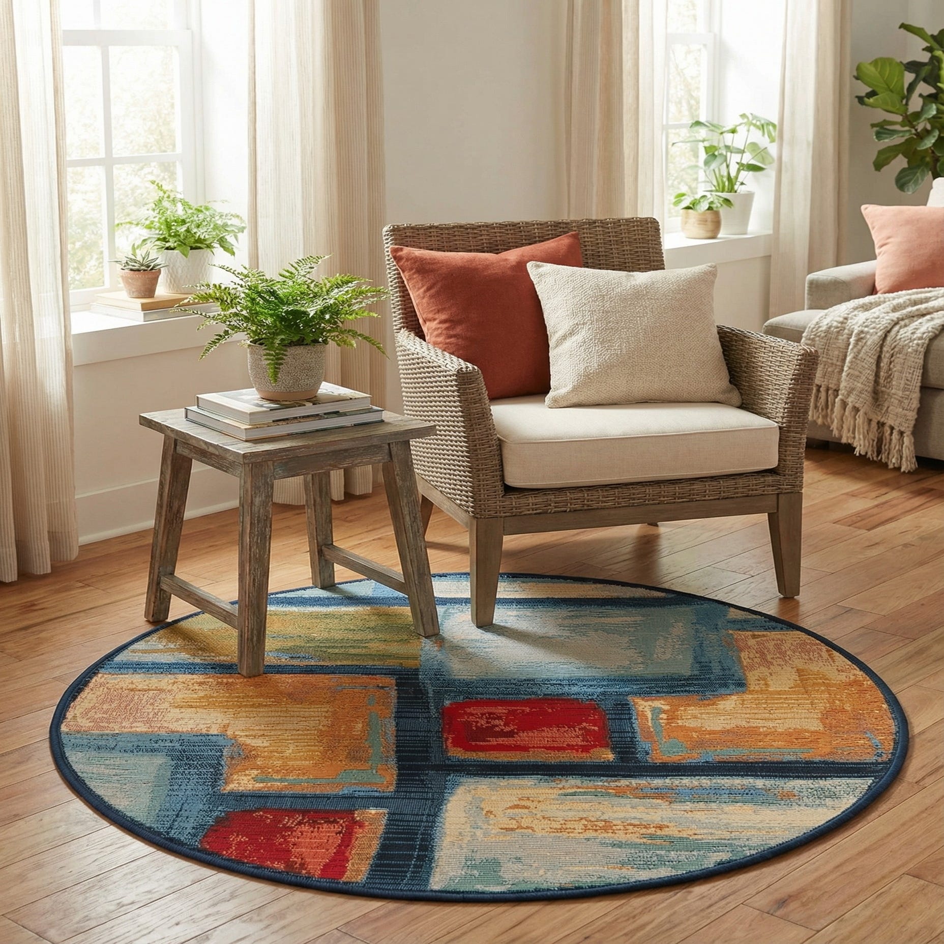 2' 7 x 2' 7 Washable Modern Indoor / Outdoor Round Rug