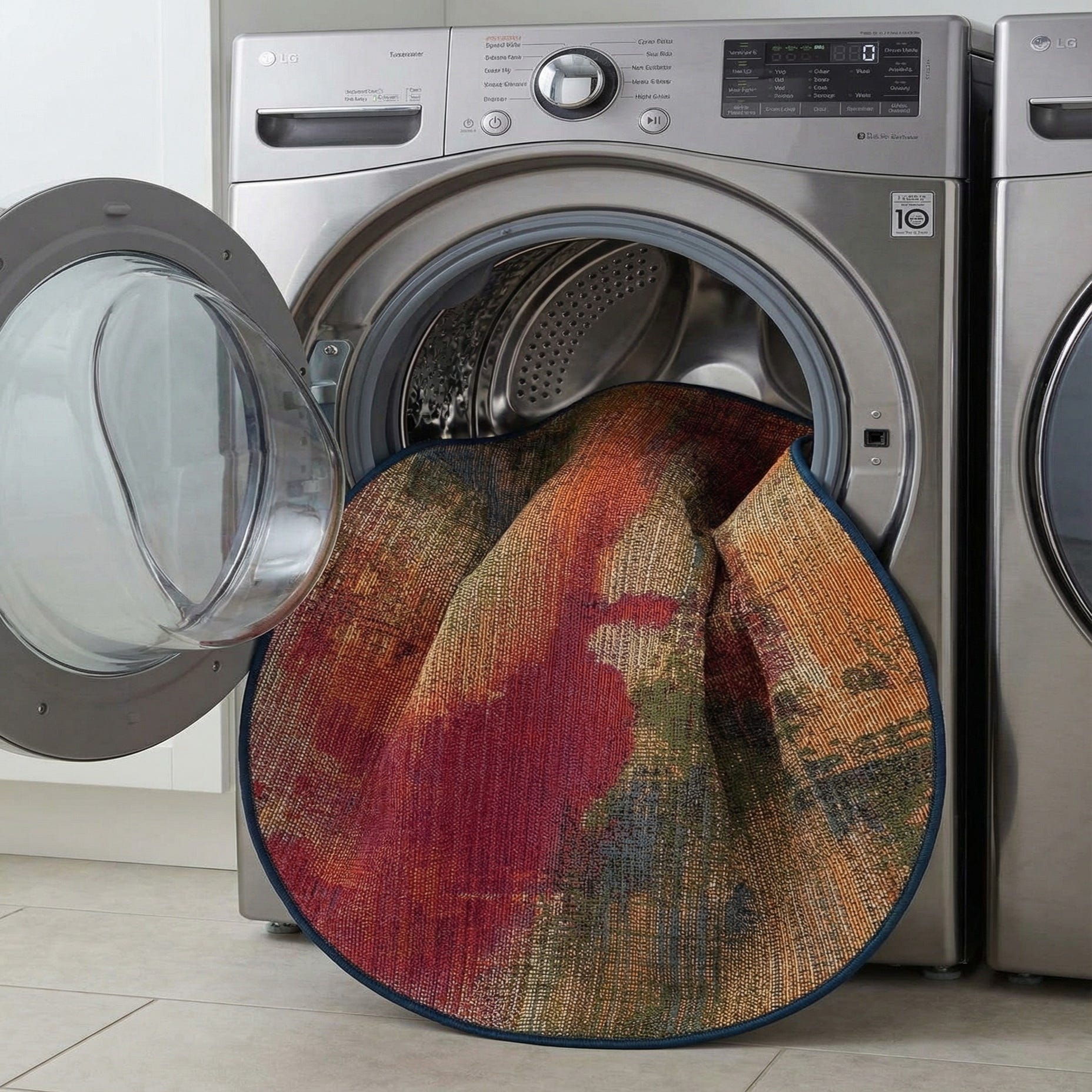 2' 7 x 2' 7 Washable Modern Indoor / Outdoor Round Rug