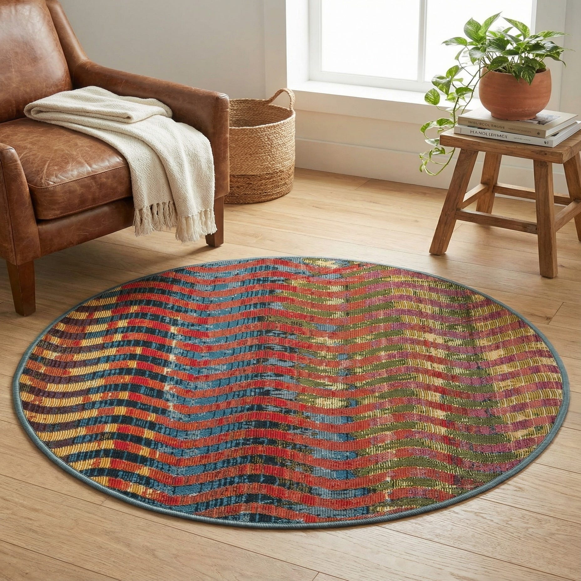 2' 7 x 2' 7 Washable Modern Indoor / Outdoor Round Rug