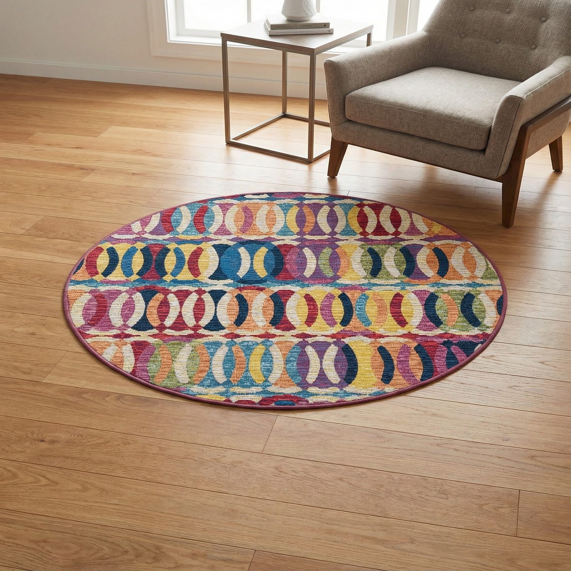 3' 3 x 3' 3 Washable Modern Indoor / Outdoor Round Rug