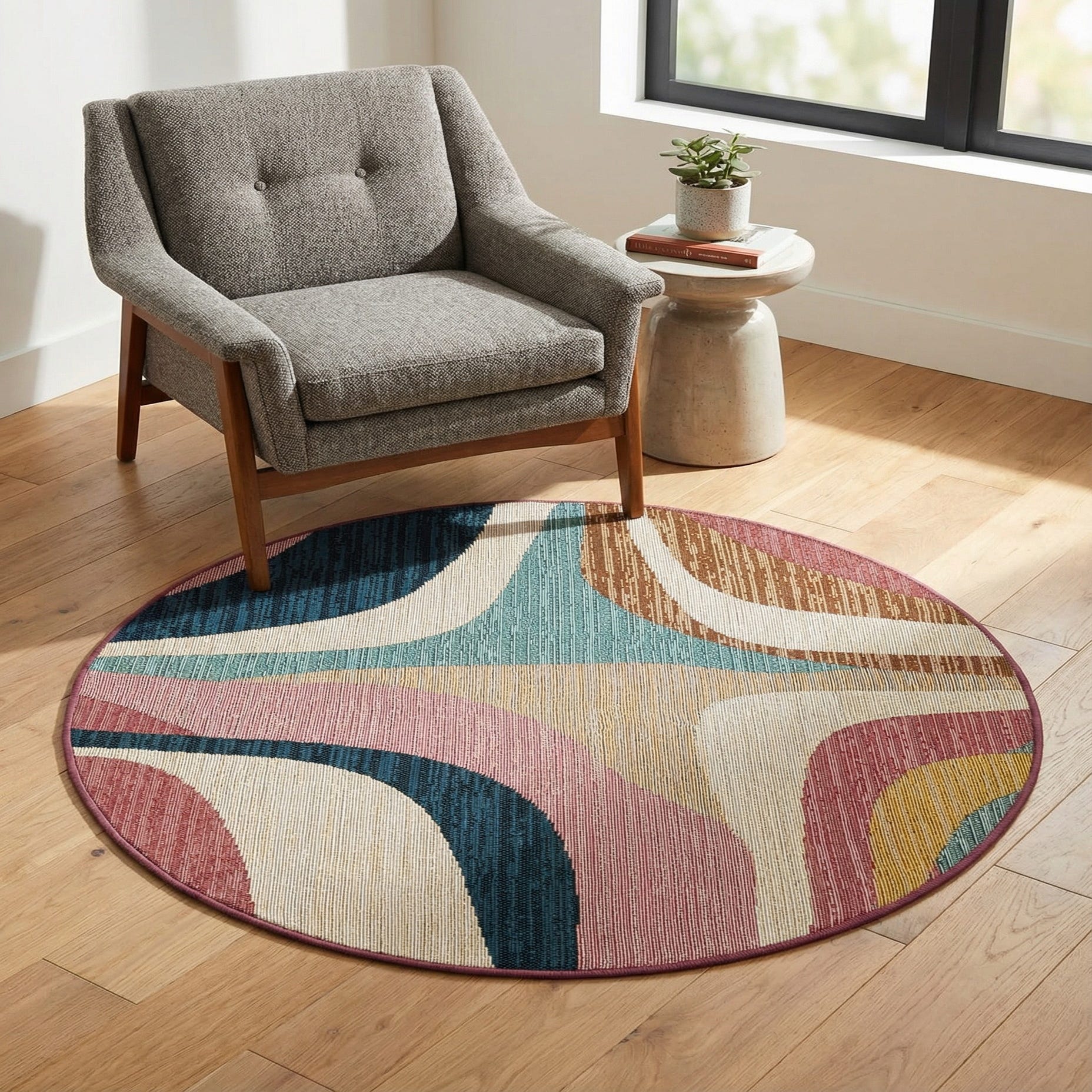 Primary image 3' x 3'  Washable Modern Indoor / Outdoor Round Rug