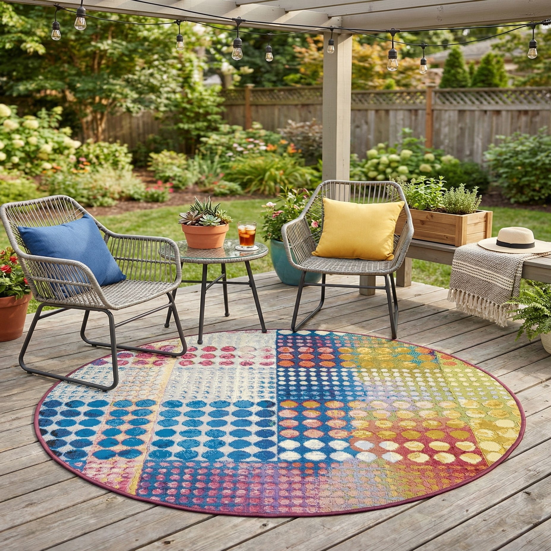 3' x 3' Washable Modern Indoor / Outdoor Round Rug