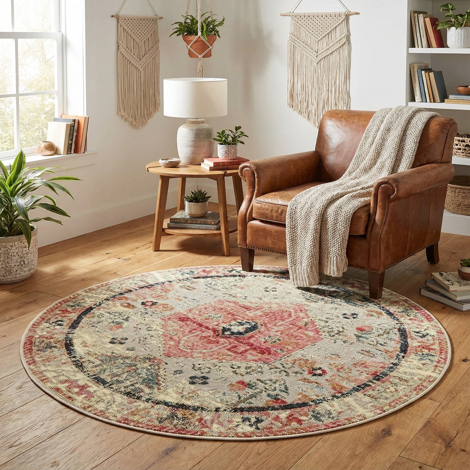 3' x 3' Washable Traditional Indoor / Outdoor Round Rug