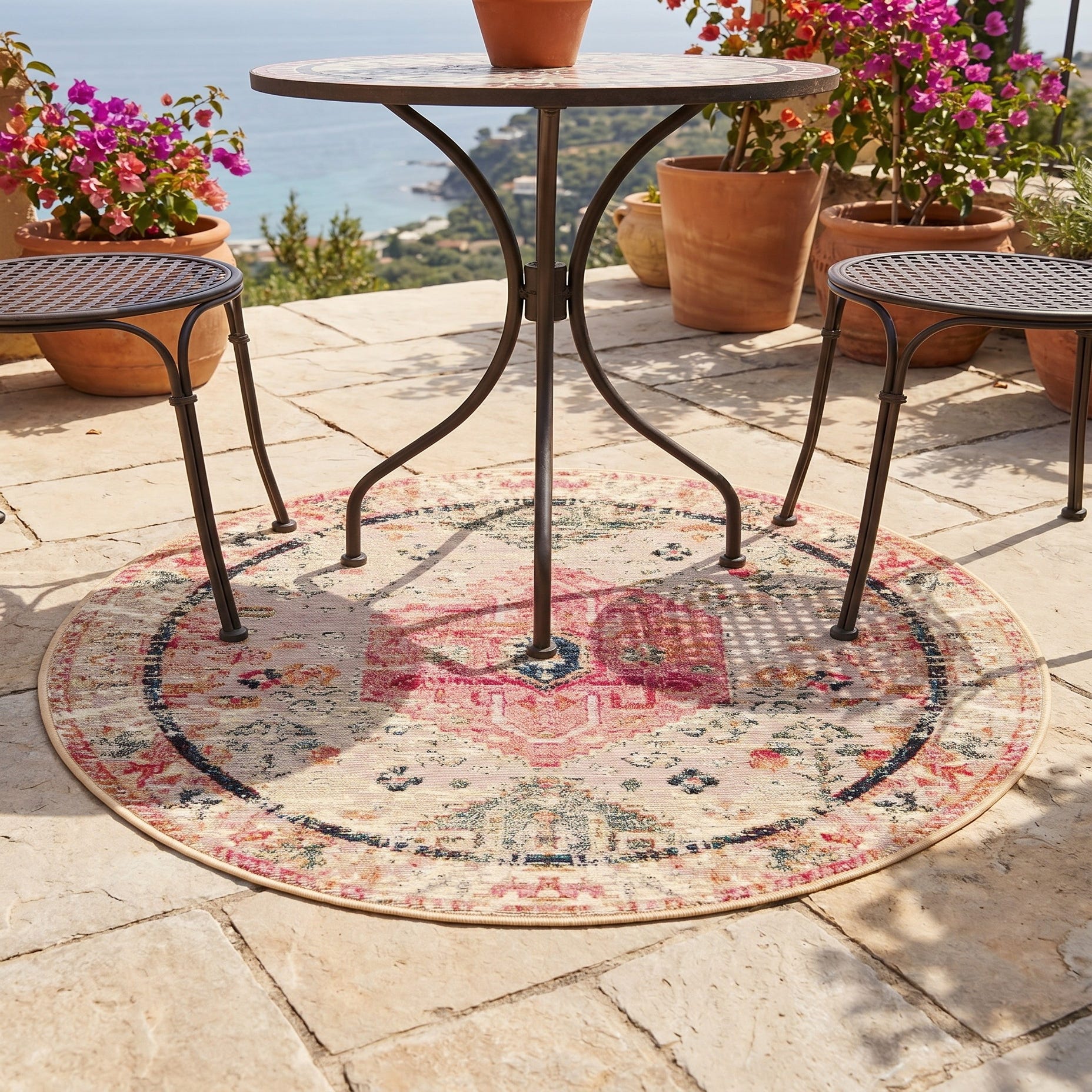 3' x 3' Easy-Clean Traditional Indoor / Outdoor Round Rug
