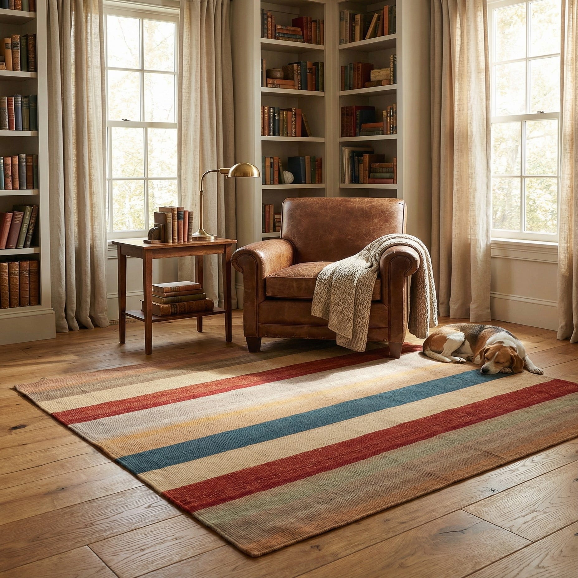 Primary color is Multi. Colors in this rug include: Multi, Beige, Brown, Navy Blue, Red, Tan, Olive.
