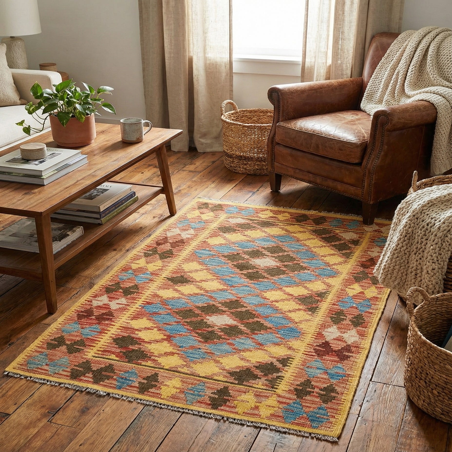 2' 9 x 4' 4 Hand Woven Kilim Maymana Wool Rug