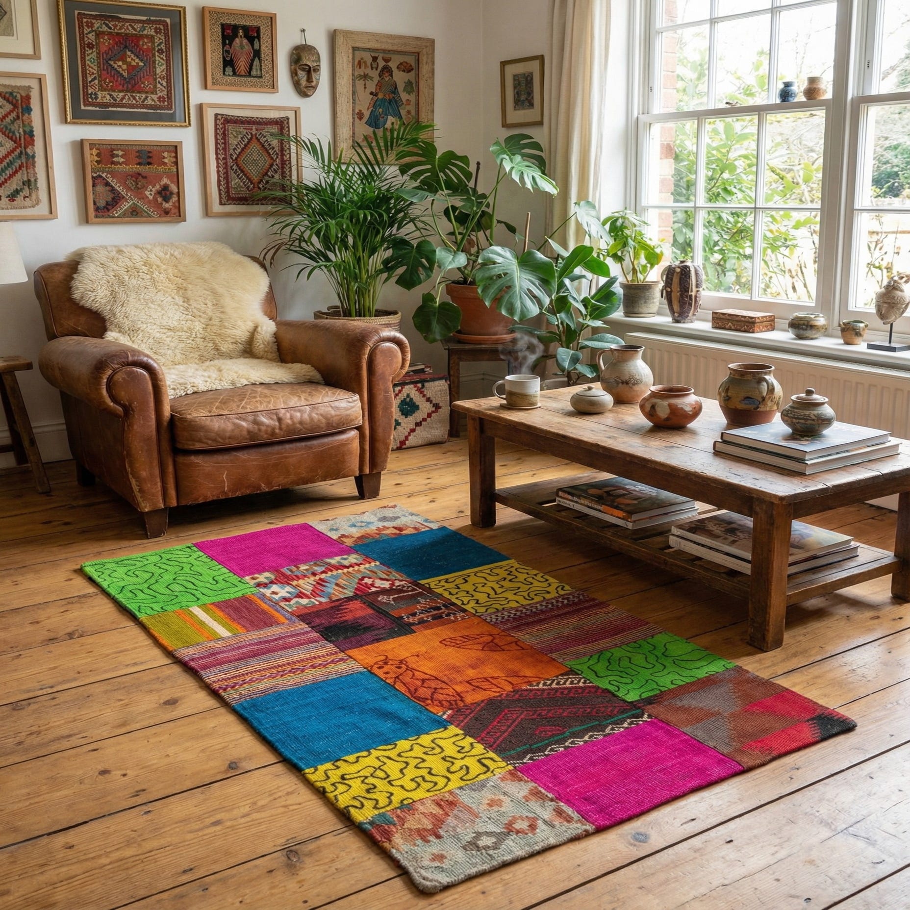 2' 2 x 4' 2 Hand Woven Kilim Patchwork Wool Rug