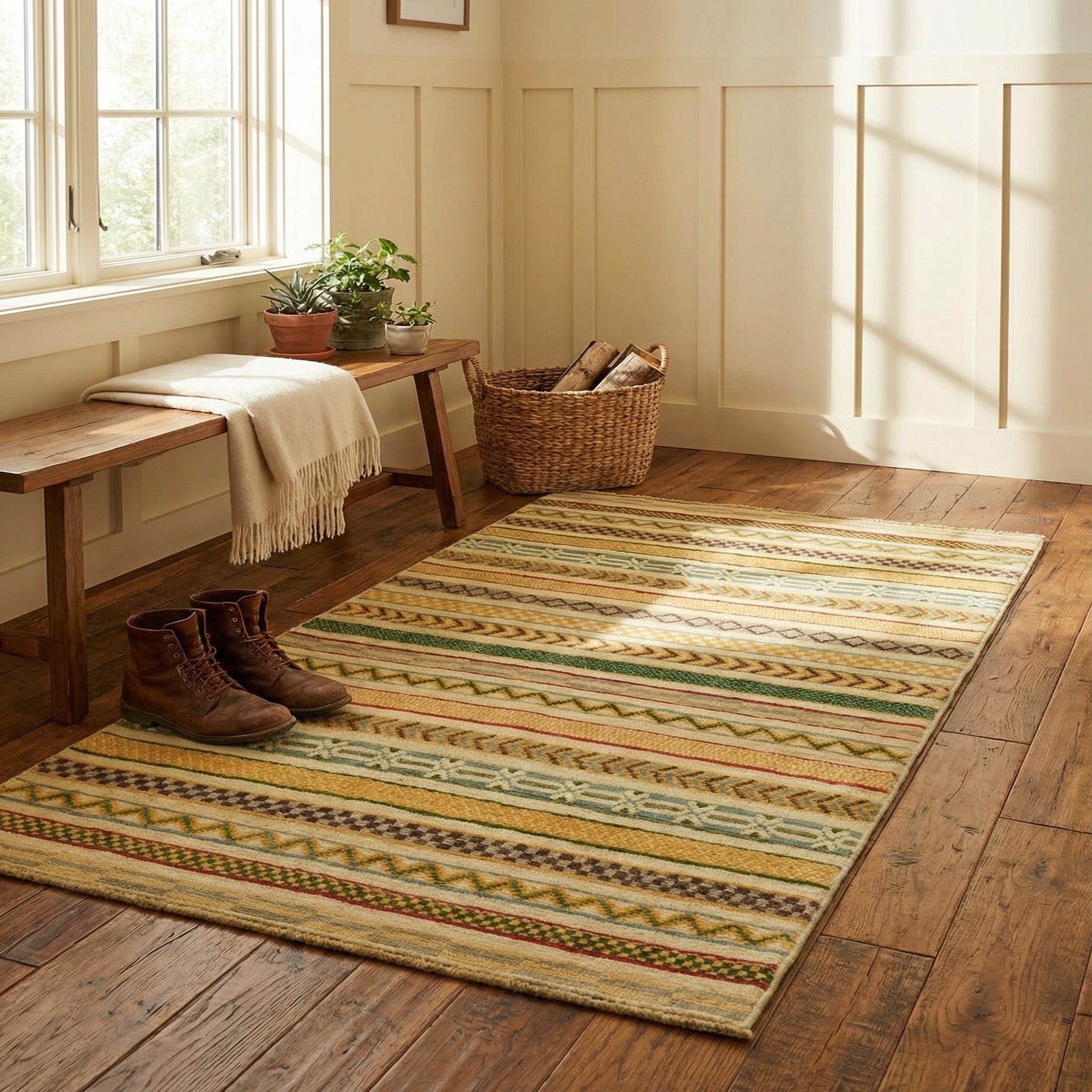 Primary color is Multi. Colors in this rug include: Multi, Beige, Brown, Burgundy, Cream, Gold, Hunter Green, Light Green, Tan.