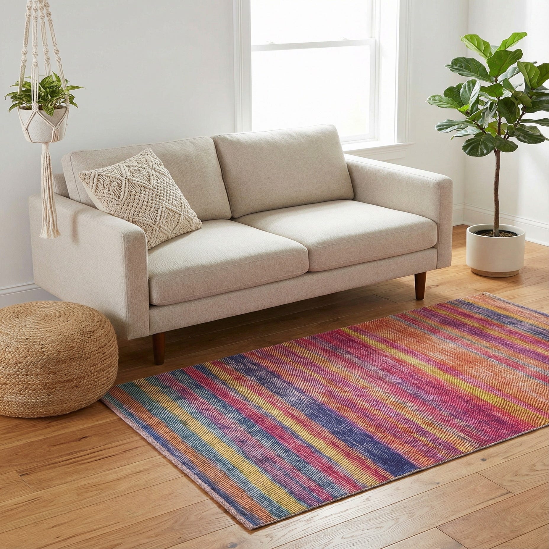 Primary color is Multi. Colors in this rug include: Multi, Beige, Blue, Brown, Navy Blue, Yellow, Violet, Pink, Green.