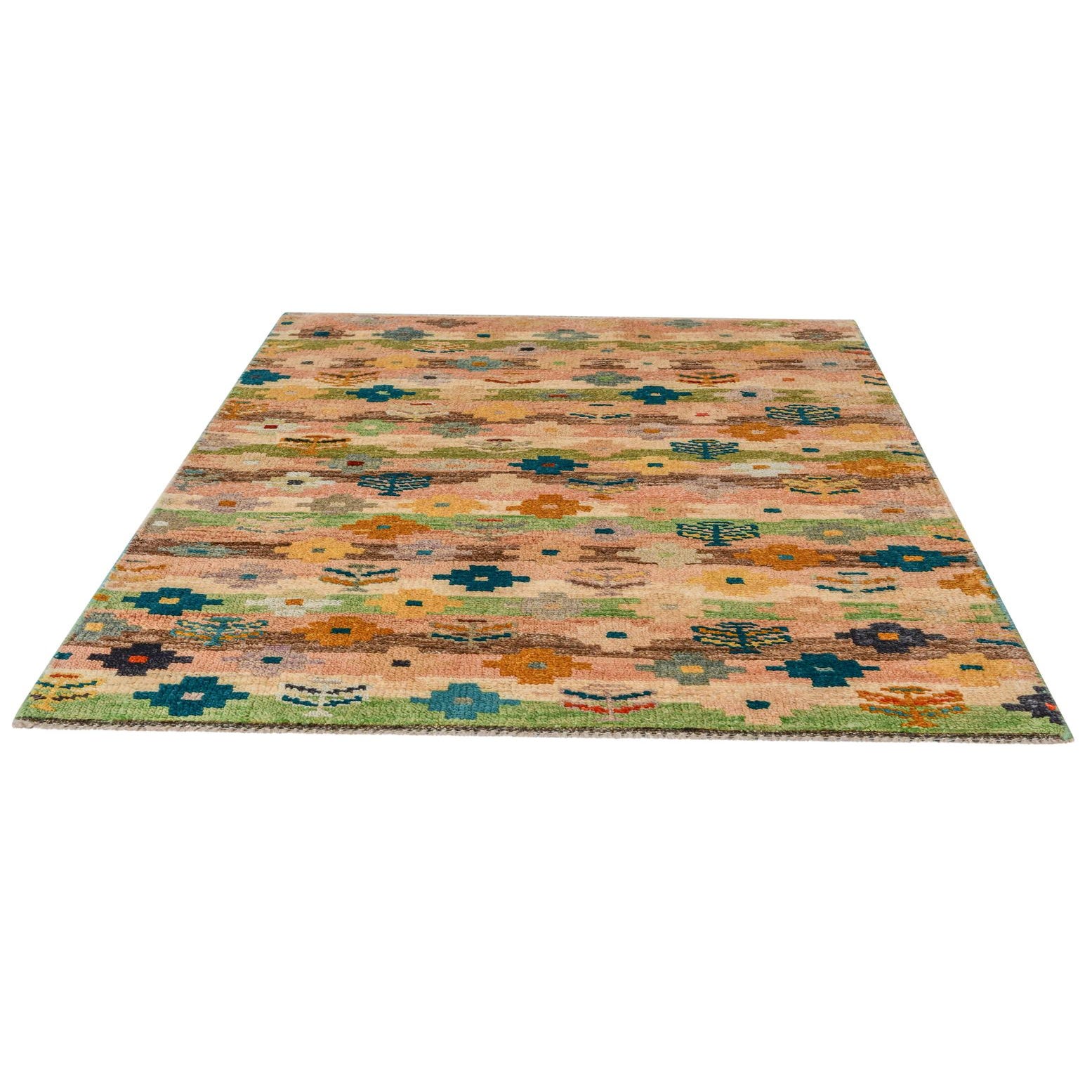 Primary color is Multi. Colors in this rug include: Multi, Beige, Brown, Cream, Green, Light Brown, Gold, Ivory.