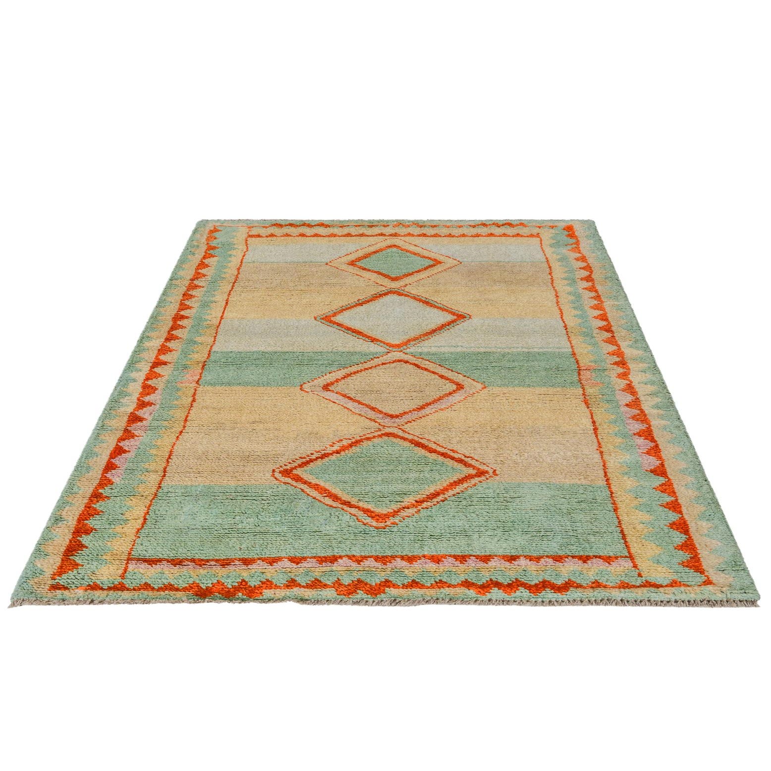 Primary color is Multi. Colors in this rug include: Multi, Beige, Orange, Tan, Green.