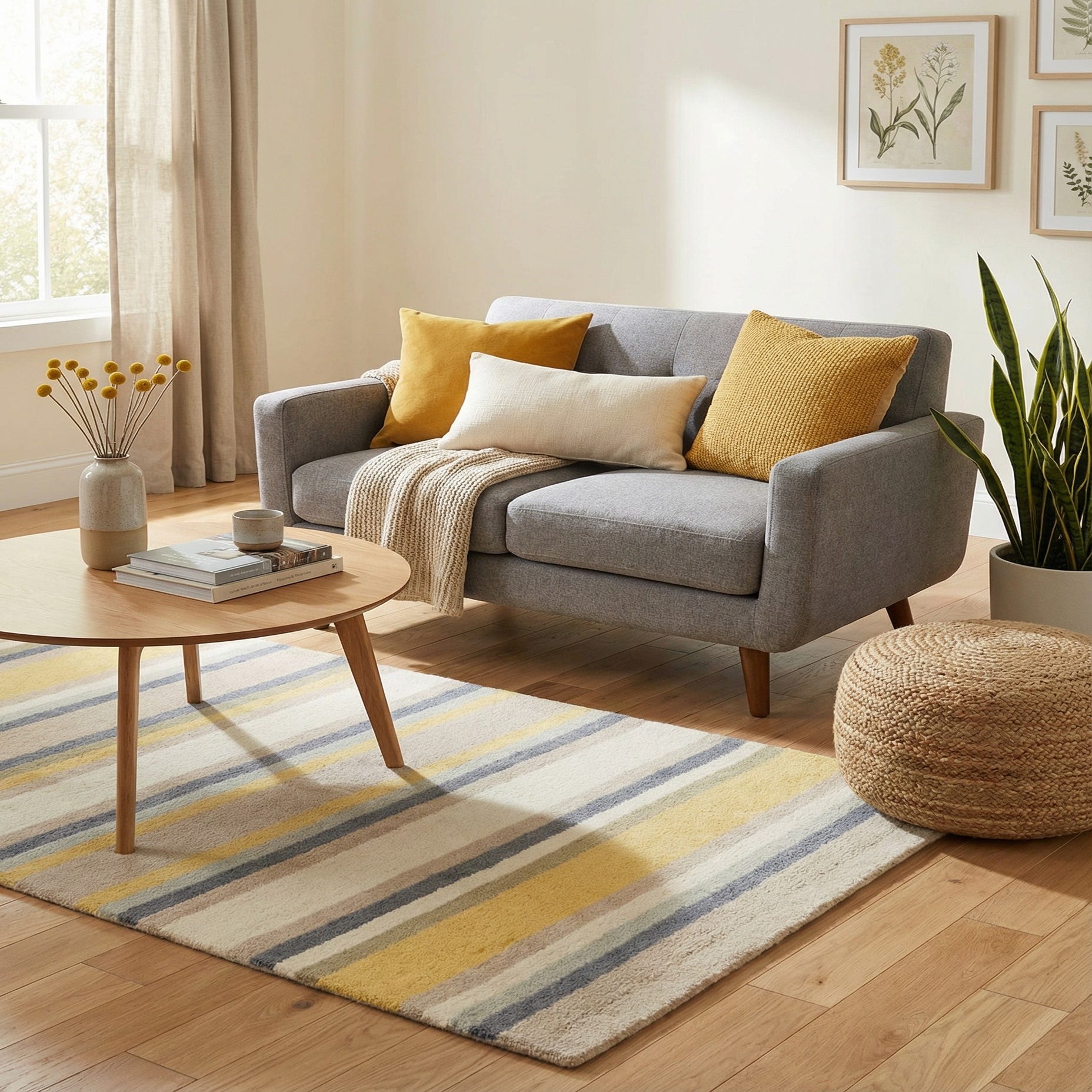 Primary color is Multi. Colors in this rug include: Multi, Beige, Gray, Cream, Light Brown, Yellow.