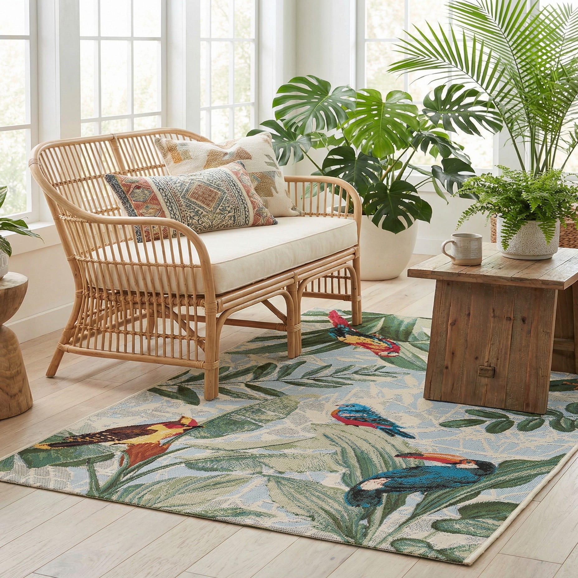 3' 3 x 5' 3 Washable Botanical Indoor / Outdoor Rug