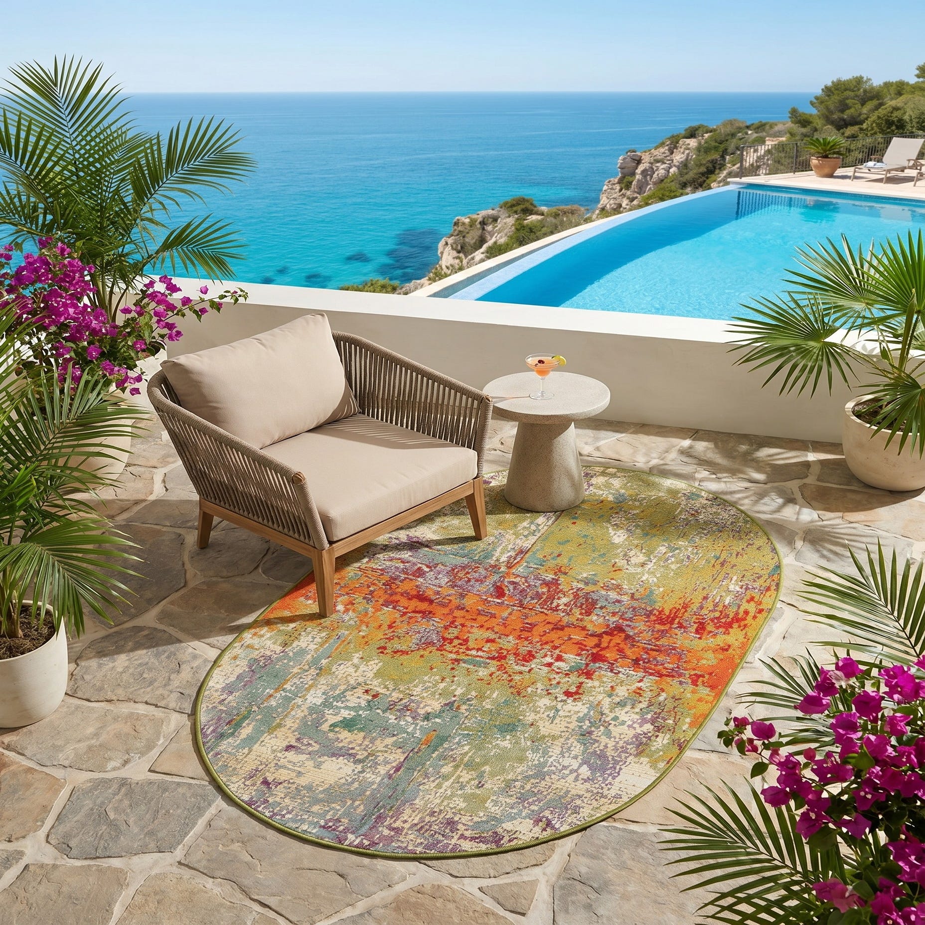 3' 3 x 5' 3 Easy-Clean Modern Indoor / Outdoor Oval Rug