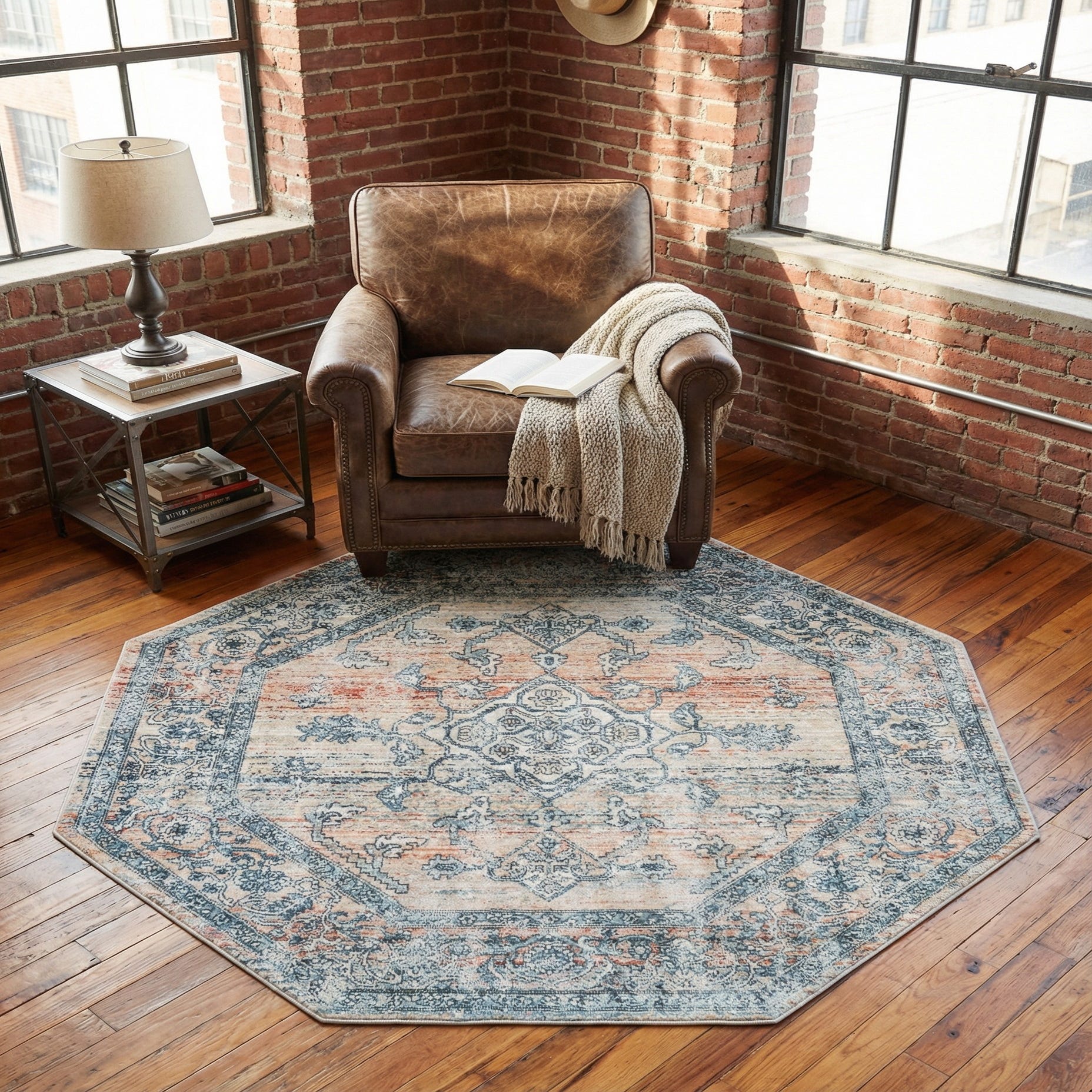 Primary color is Multi. Colors in this rug include: Multi, Blue, Gray, Ivory, Light Blue, Light Brown, Red, Rust Red, Terracotta.