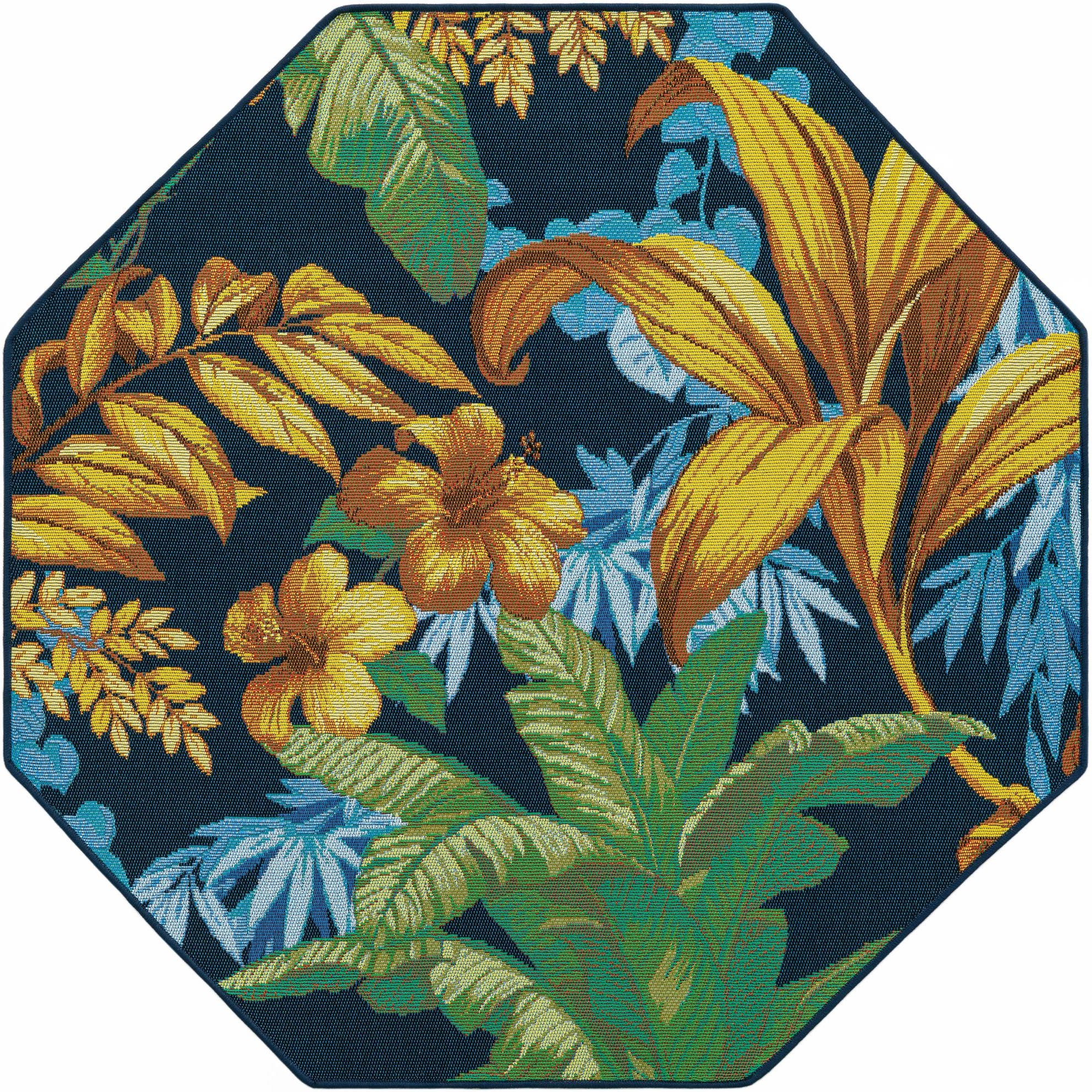 4' x 4' Washable Botanical Indoor / Outdoor Octagon Rug