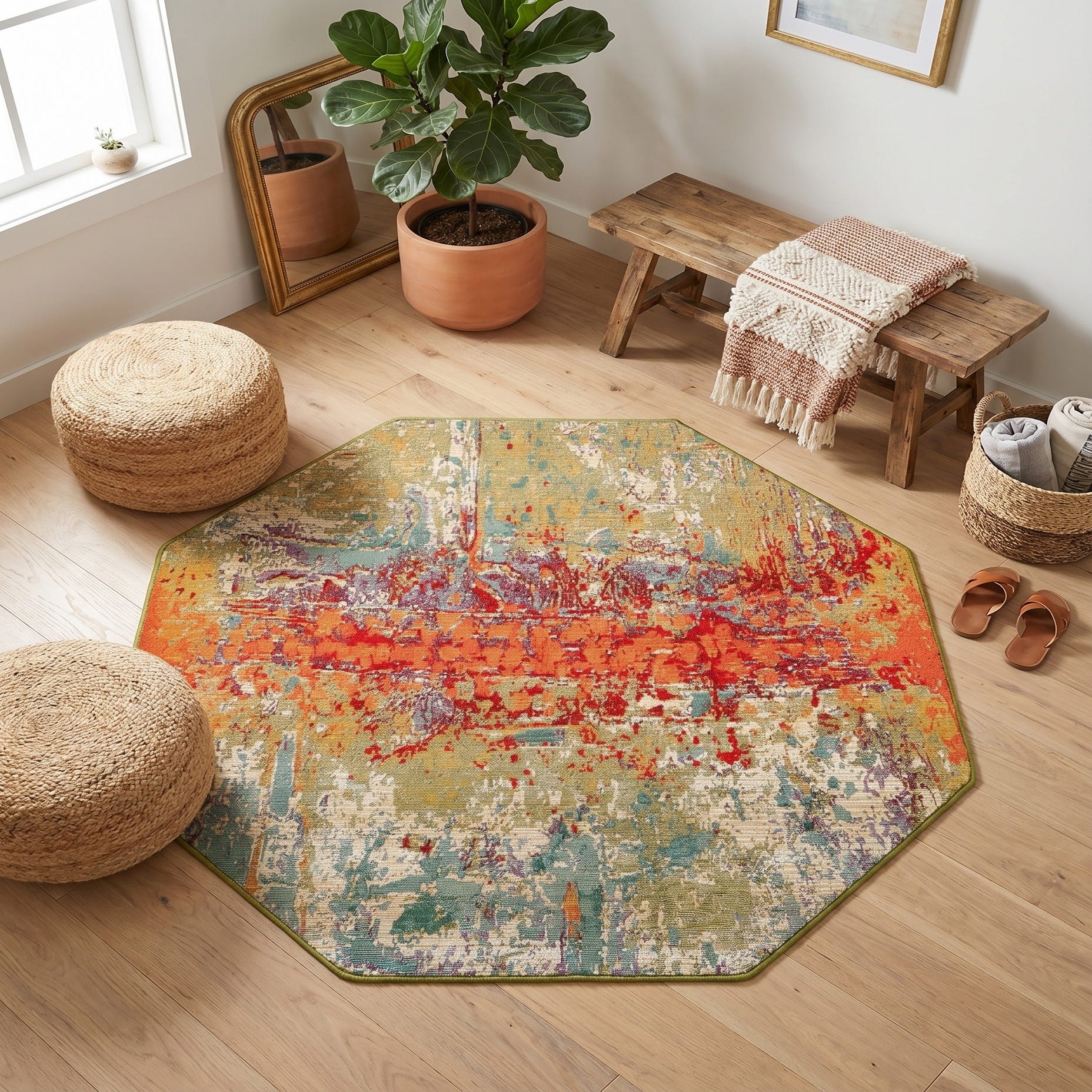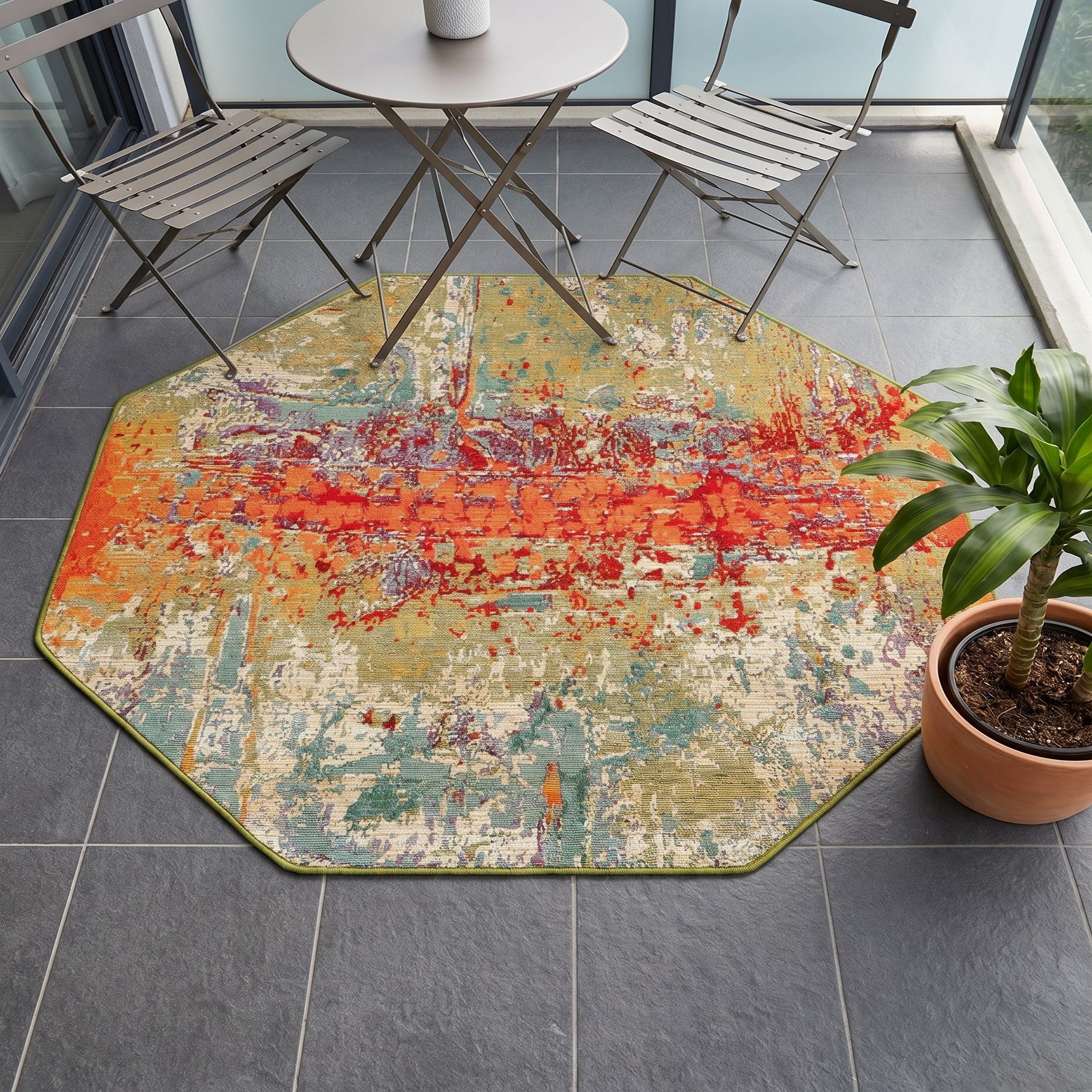 4' x 4' Easy-Clean Modern Indoor / Outdoor Octagon Rug