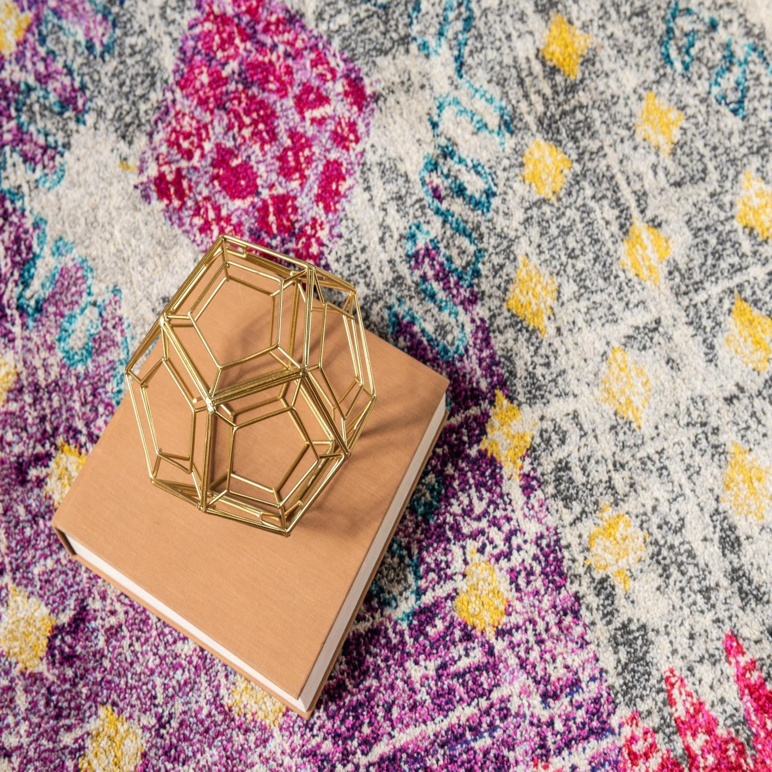 Primary color is Multi. Colors in this rug include: Multi, Blue, Cream, Gray, Olive, Orange, Turquoise, Violet.