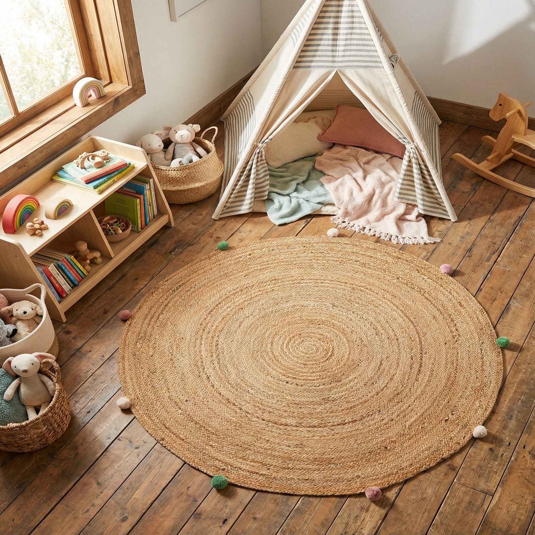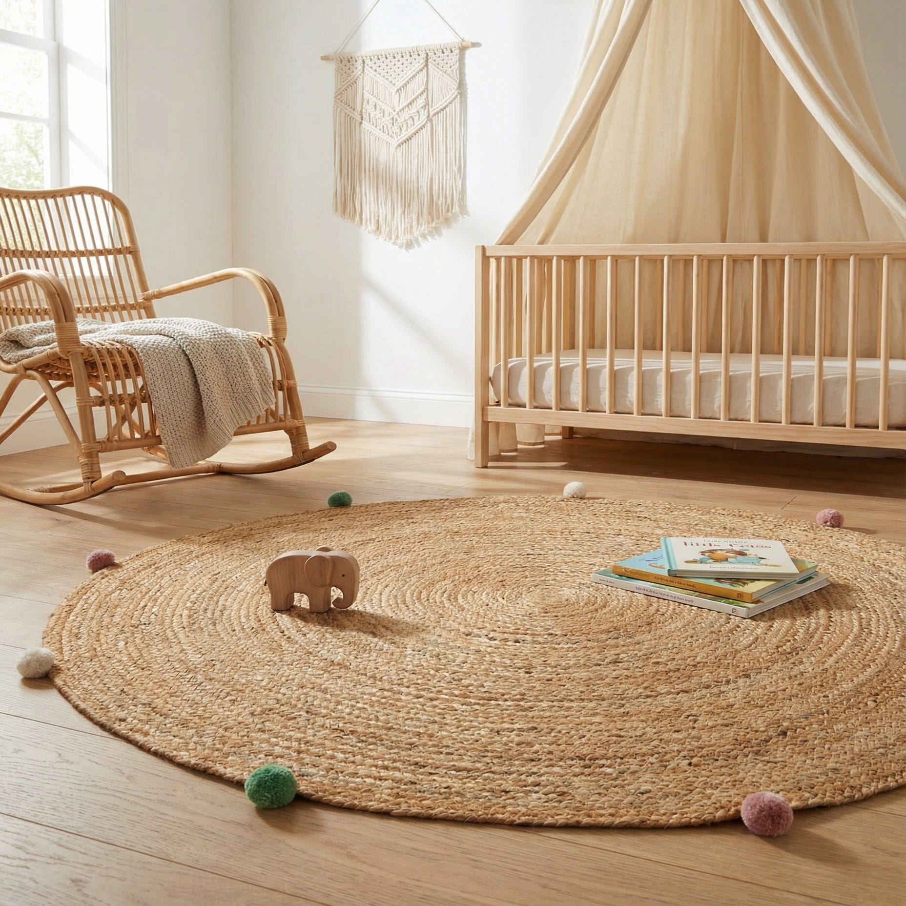 Detail image of 4' 1 x 4' 1  Hand Braided Kids Braided Jute Round Rug