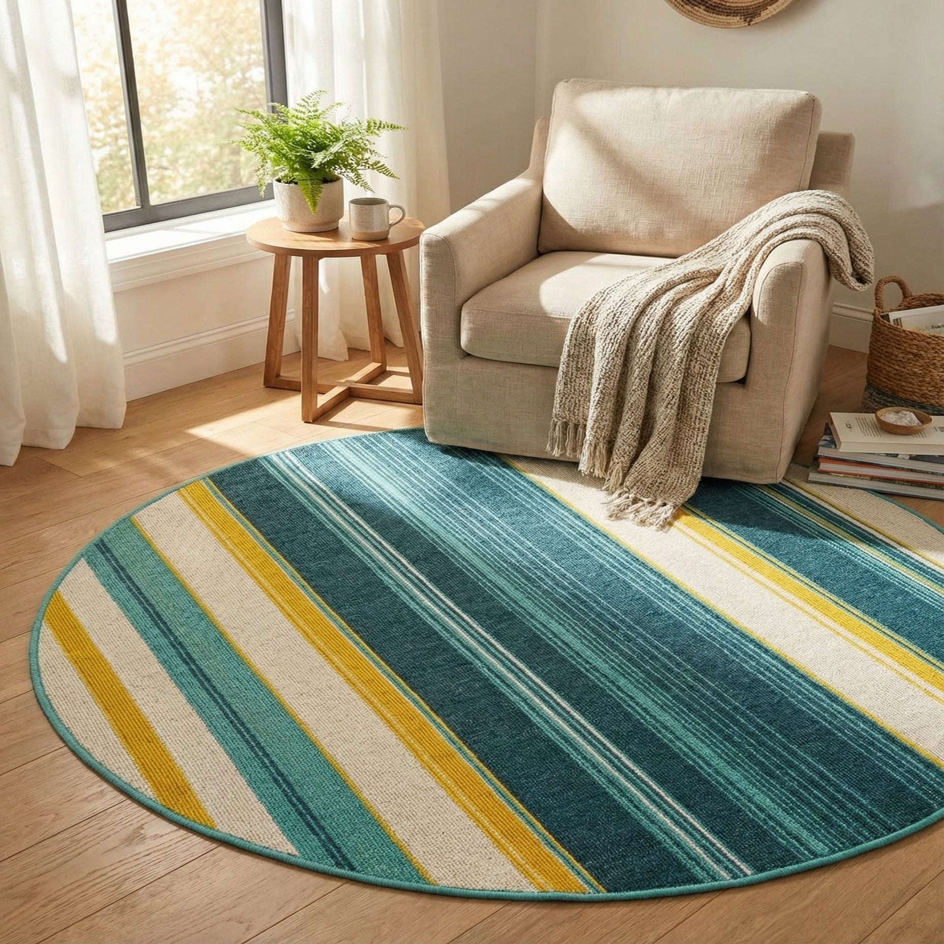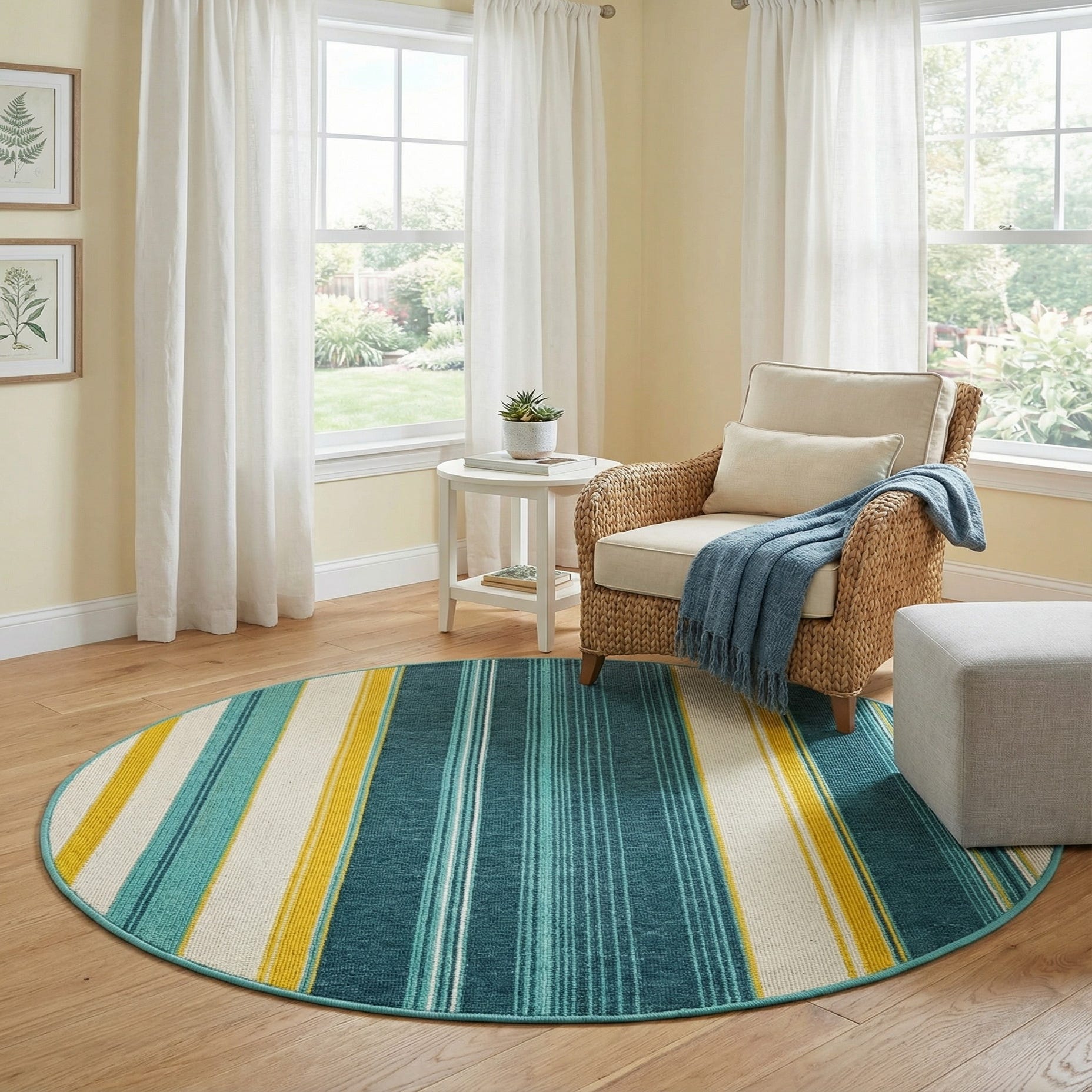4' x 4' Washable Border Indoor / Outdoor Round Rug