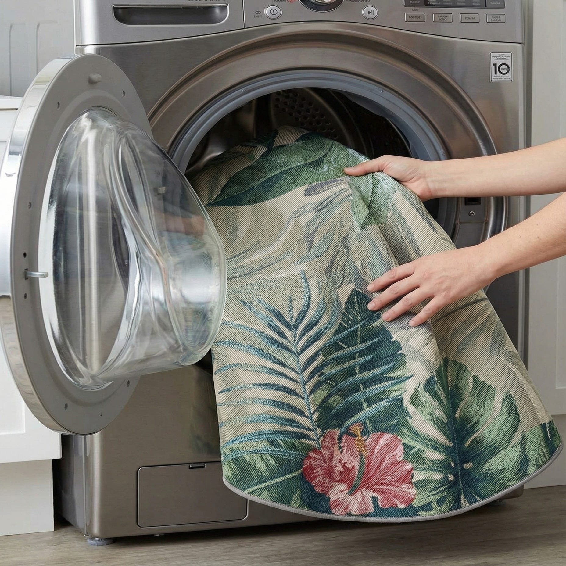 Detail image of 4' x 4'  Washable Botanical Indoor / Outdoor Round Rug