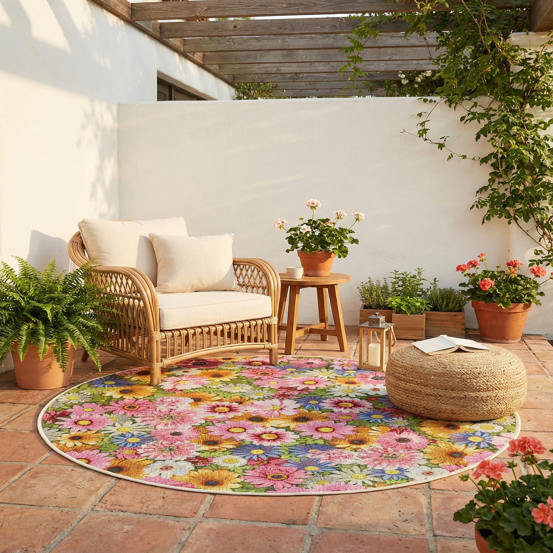 Primary image 4' x 4'  Washable Botanical Indoor / Outdoor Round Rug
