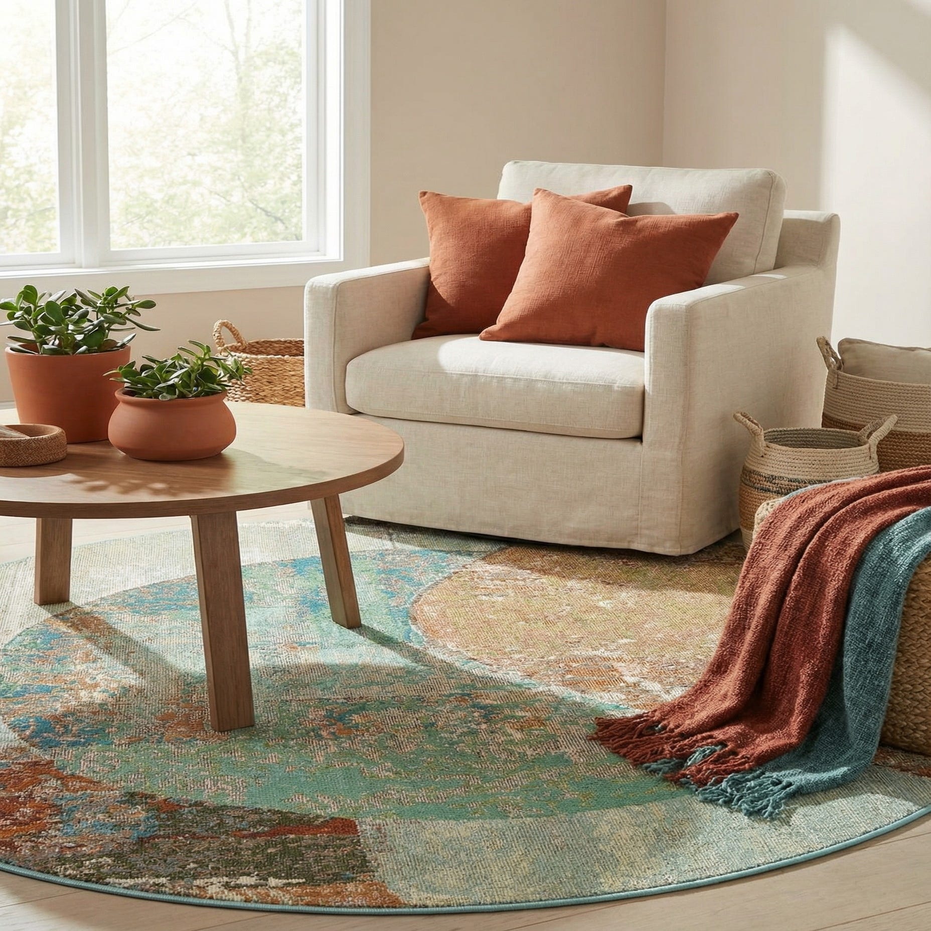 4' 1 x 4' 1 Washable Modern Indoor / Outdoor Round Rug