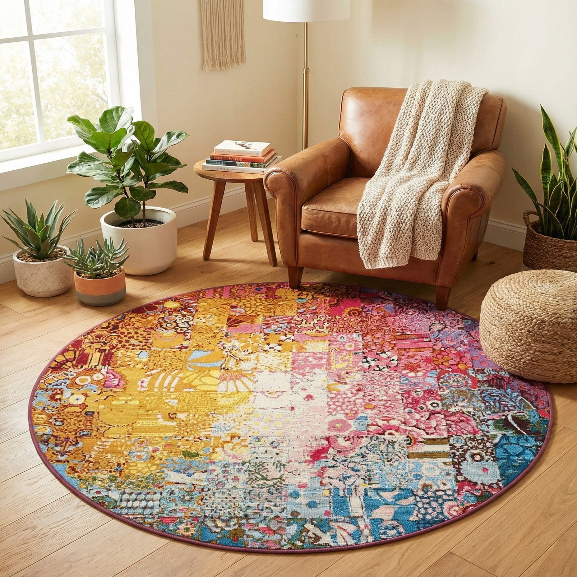 4' x 4' Washable Modern Indoor / Outdoor Round Rug