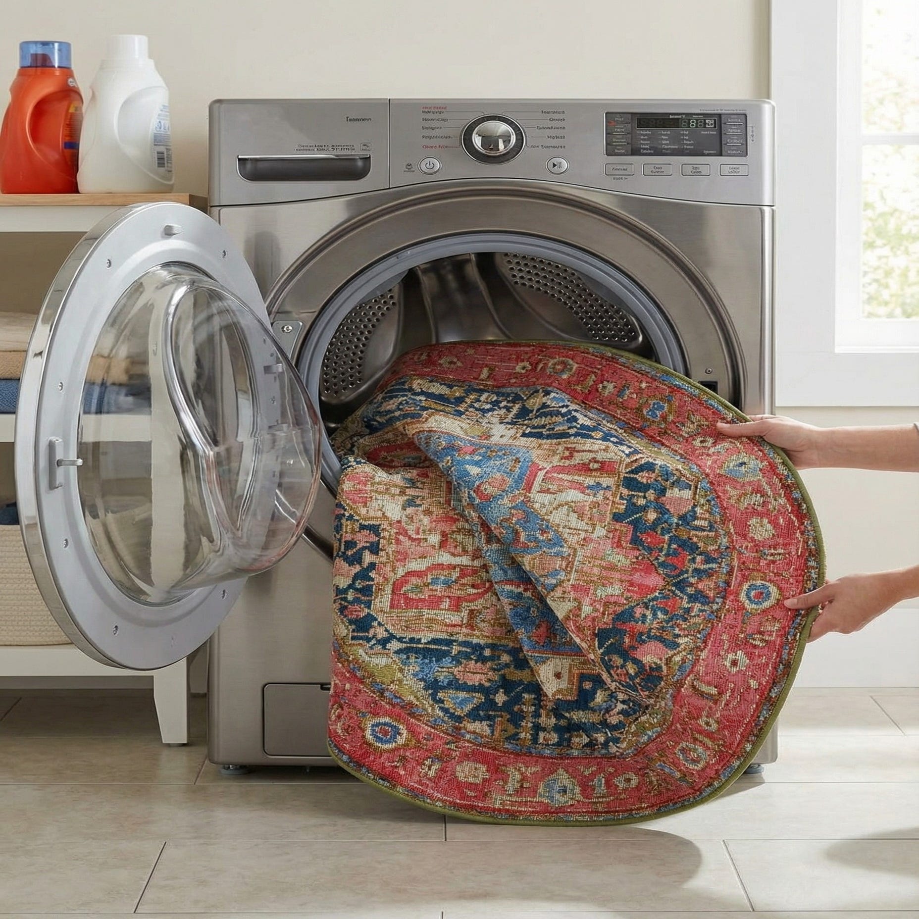 4' x 4' Washable Traditional Indoor / Outdoor Round Rug
