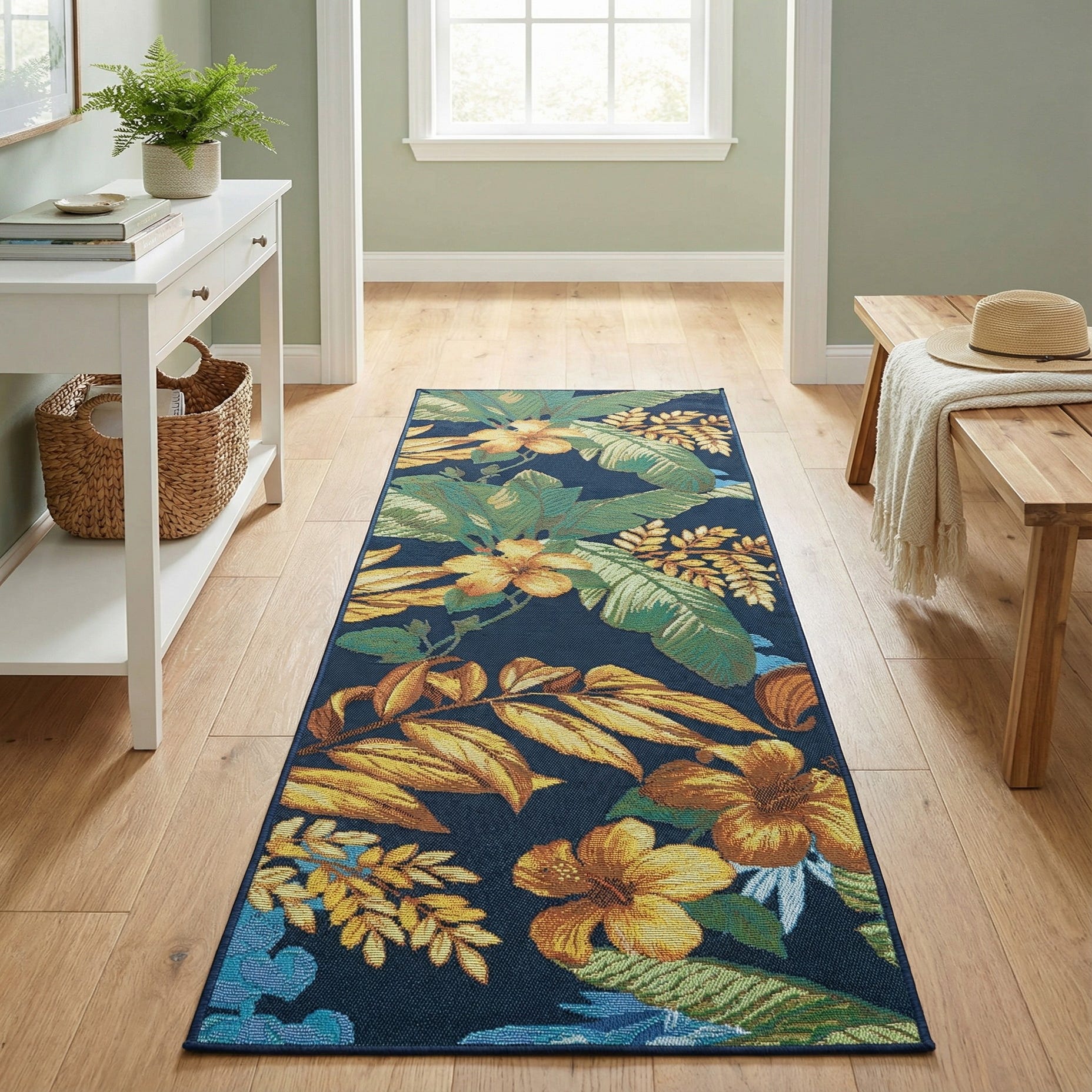 2' x 4' Washable Botanical Indoor / Outdoor Runner Rug