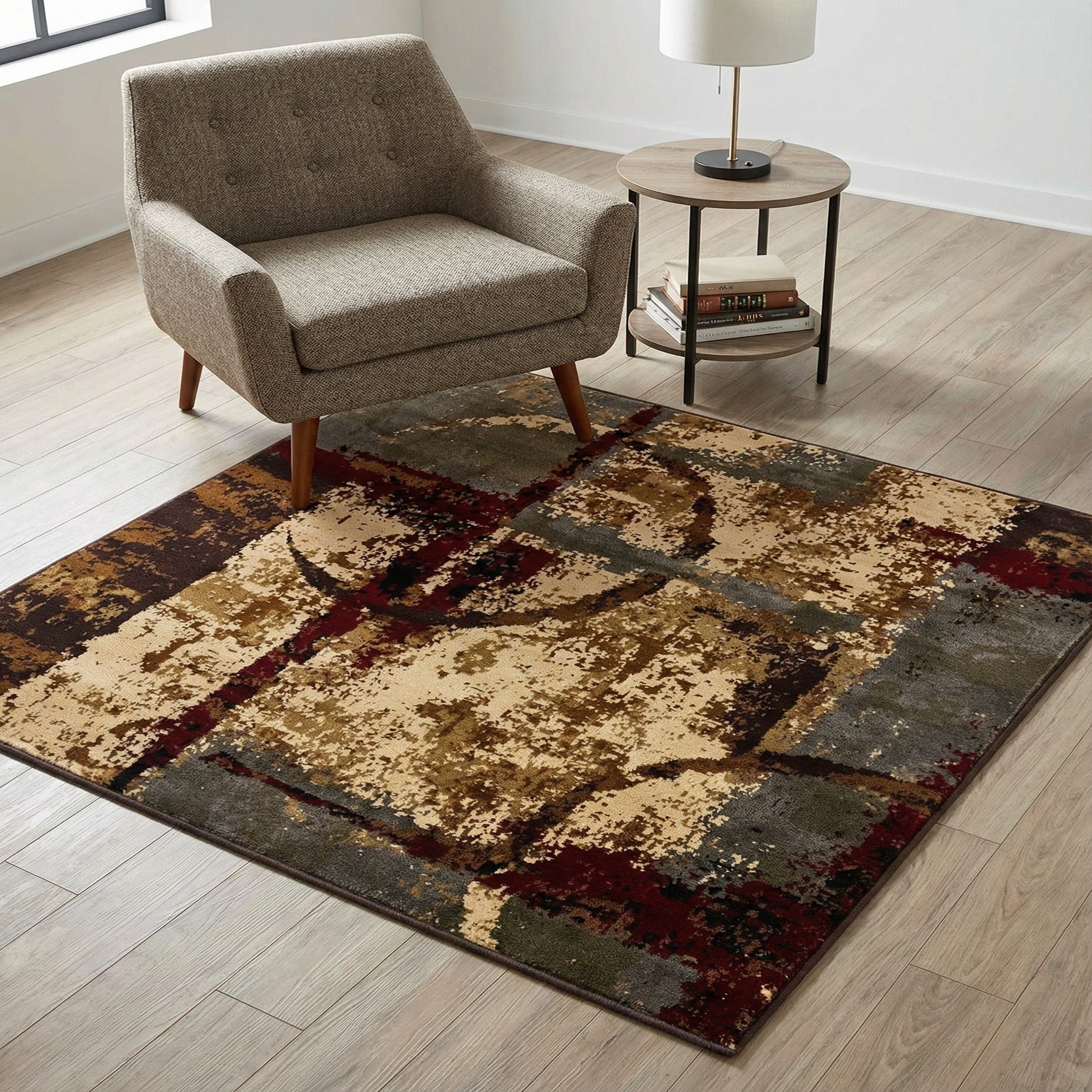 Primary color is Multi. Colors in this rug include: Multi, Beige, Black, Blue, Brown, Burgundy, Gray, Olive.