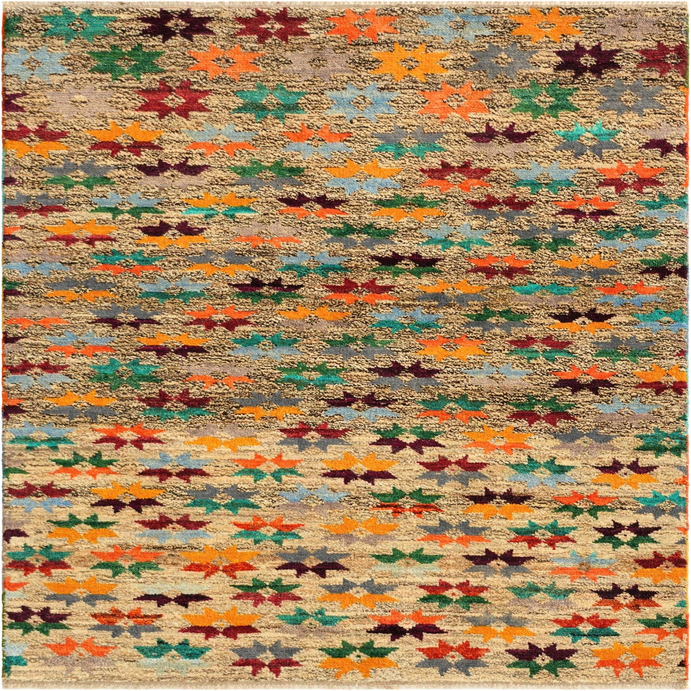 Primary color is Multi. Colors in this rug include: Multi, Beige, Black, Blue, Brown, Red, Gray, Green, Burgundy, Yellow, Olive, Orange.
