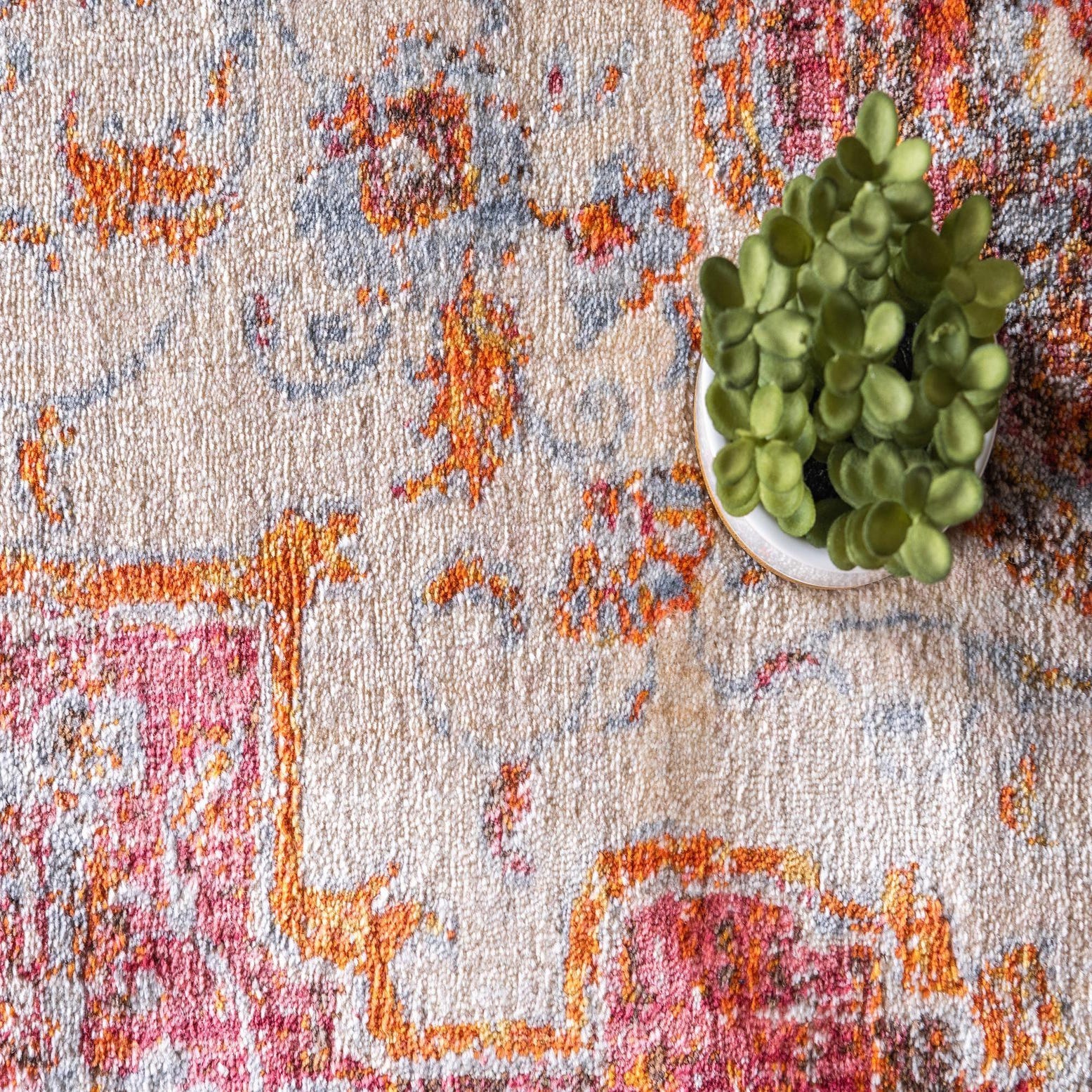 Primary color is Multi. Colors in this rug include: Multi, Beige, Gold, Light Blue, Light Brown, Light Green, Orange, Salmon.
