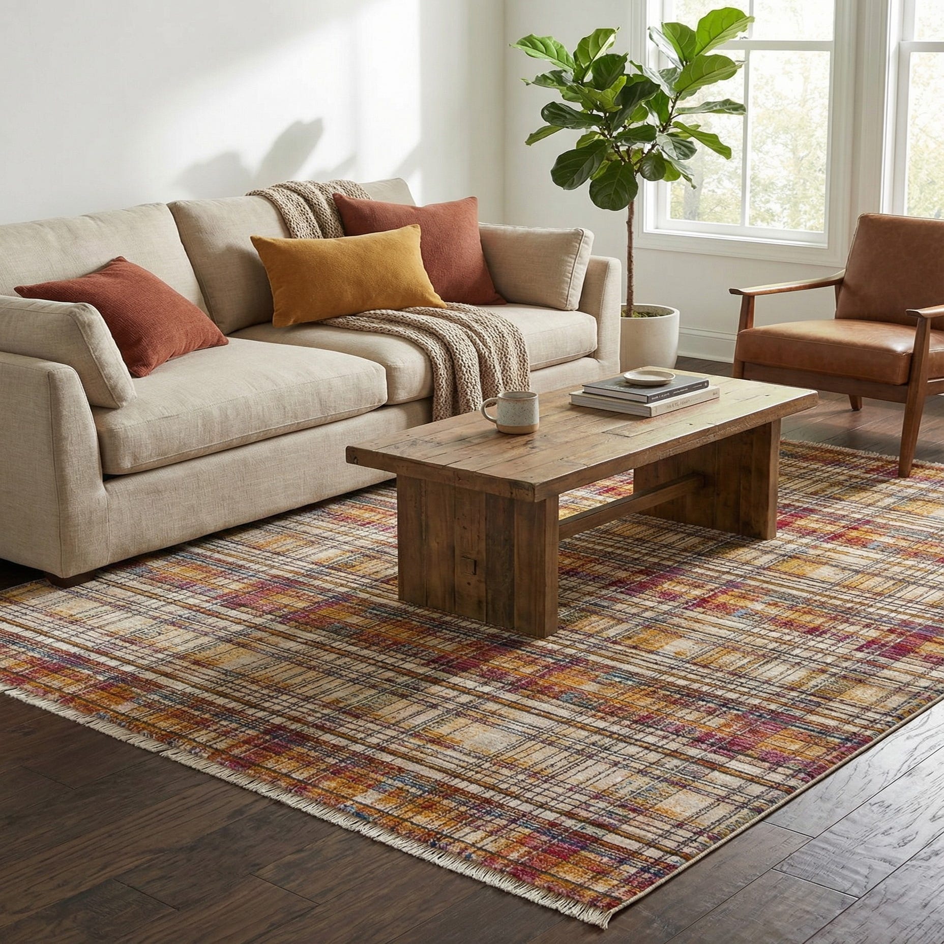 Primary color is Multi. Colors in this rug include: Multi, Beige, Black, Brown, Red, Violet, Gold, Gray.