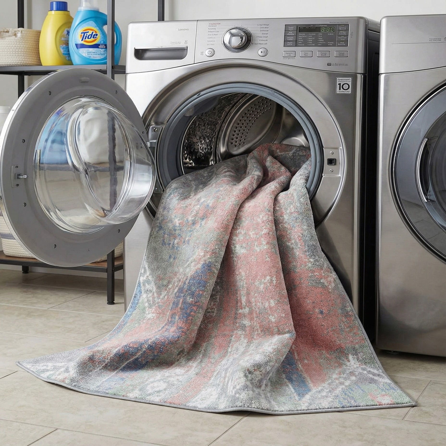 Primary color is Multi. Colors in this rug include: Multi, Gray, Ivory, Pink.