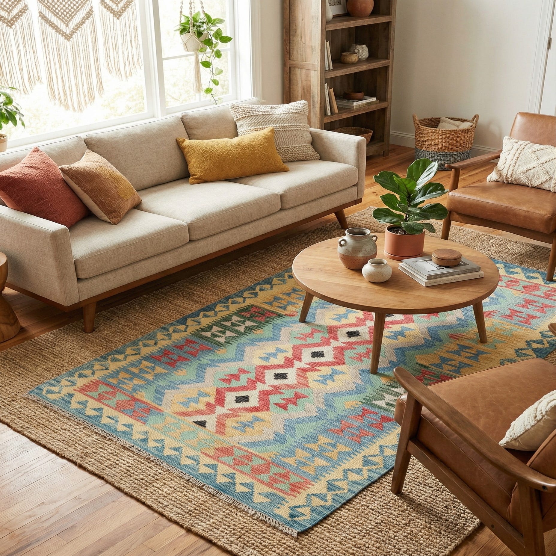 3' 6 x 6' 3 Hand Woven Kilim Maymana Wool Rug