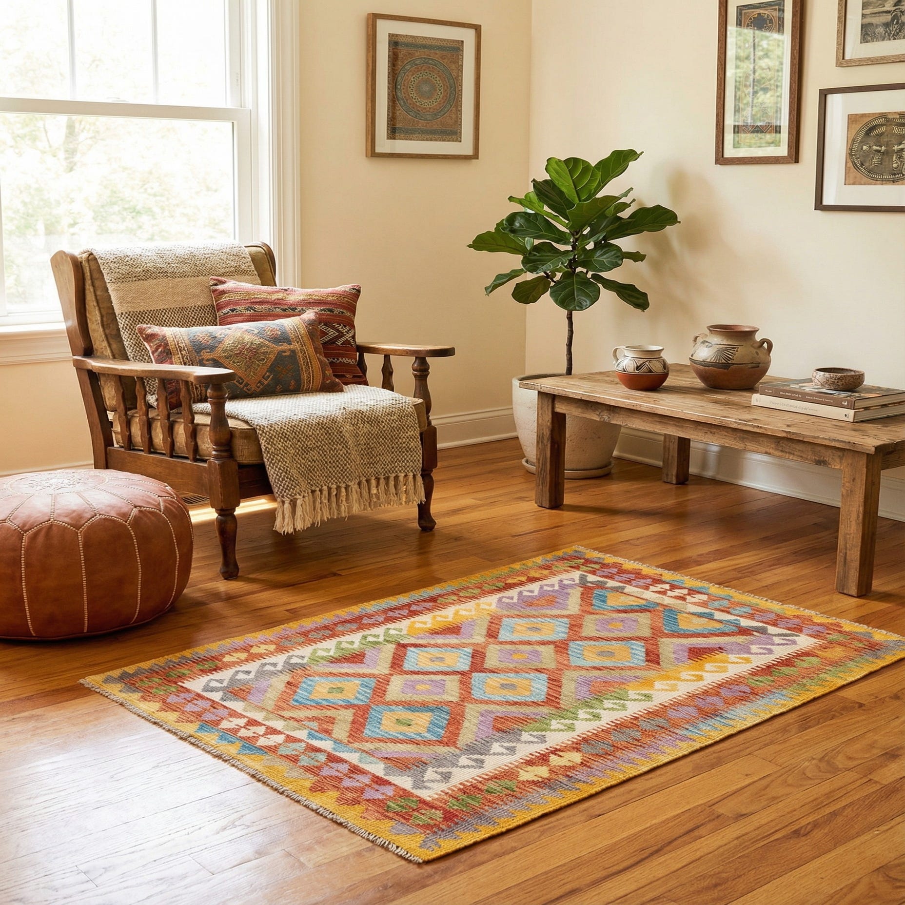 4' 4 x 5' 10 Hand Woven Kilim Maymana Wool Rug